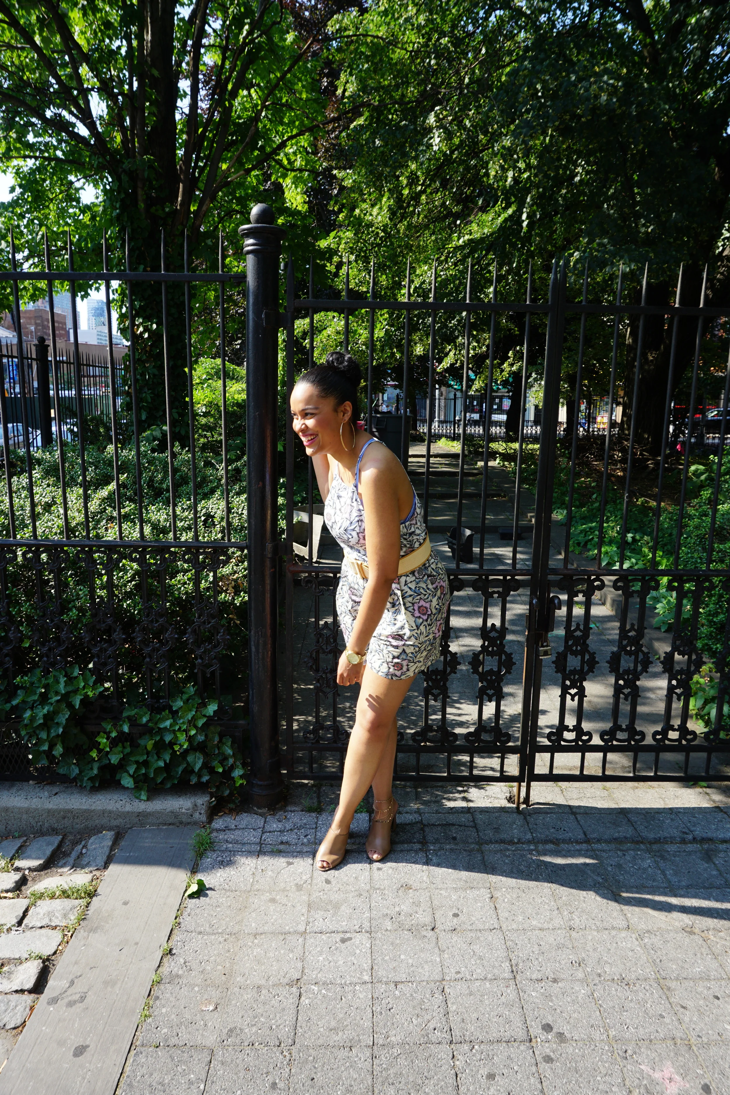 I love a good matching top and bottom just as much as I like mixing prints! This combination gives the illusion of a jumpsuit when belted. Check out this floral print top and short combo as I stroll through the streets of Brooklyn. Do you like matching sets?