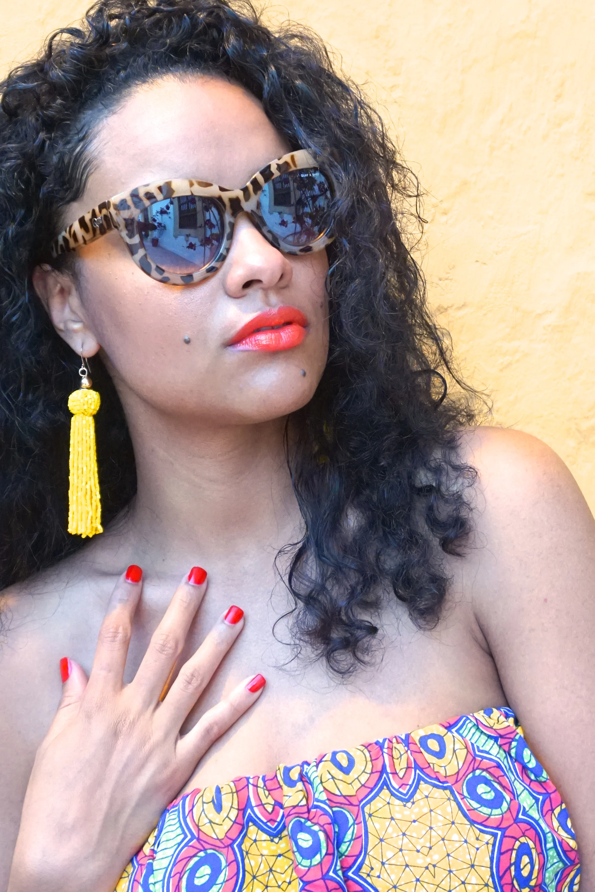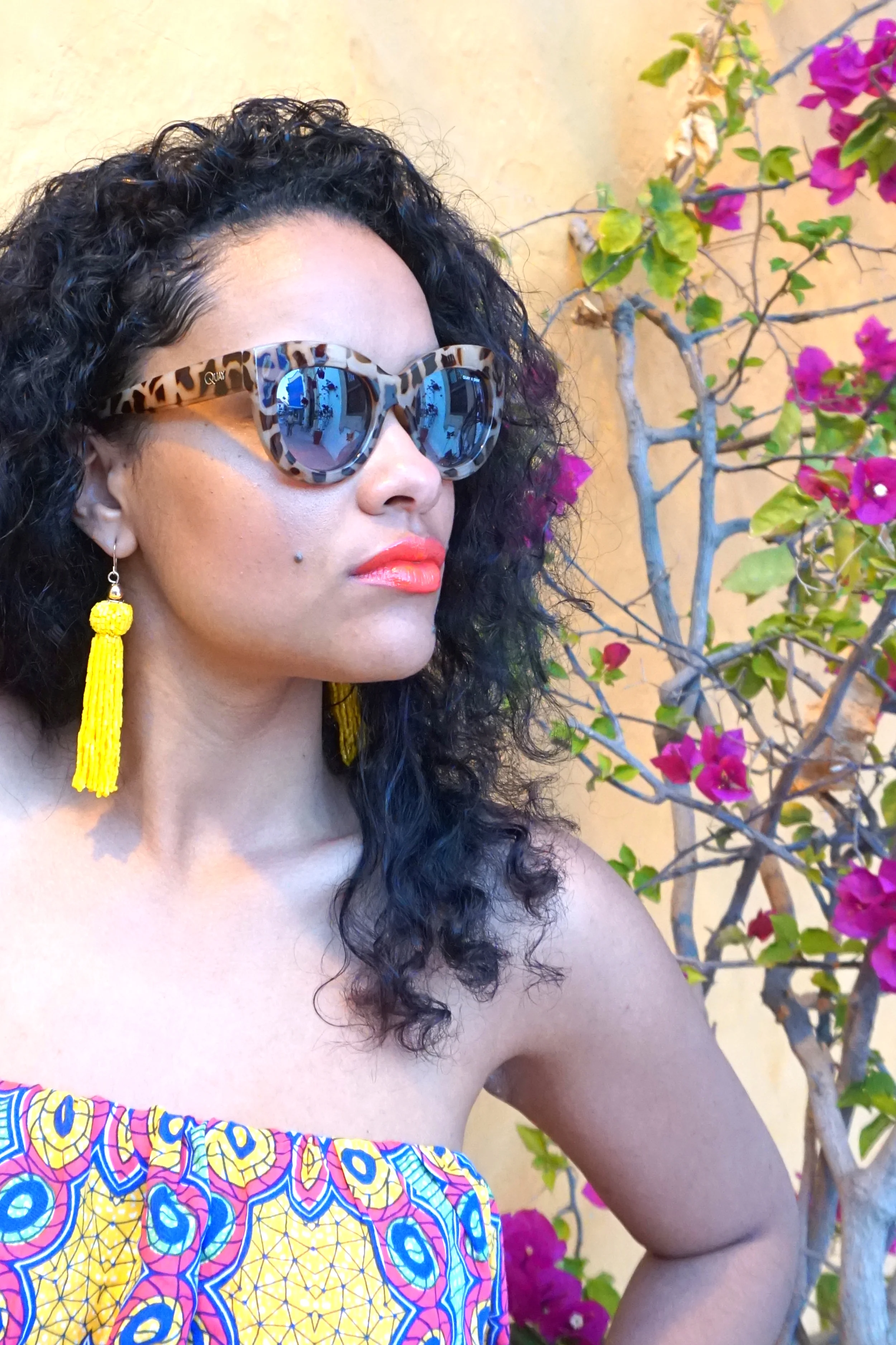 YELLOW TASSEL EARRINGS | SAHARA PRINT CO-ORD SET - TOP/SHORTS | LEOPARD SUNGLASSES