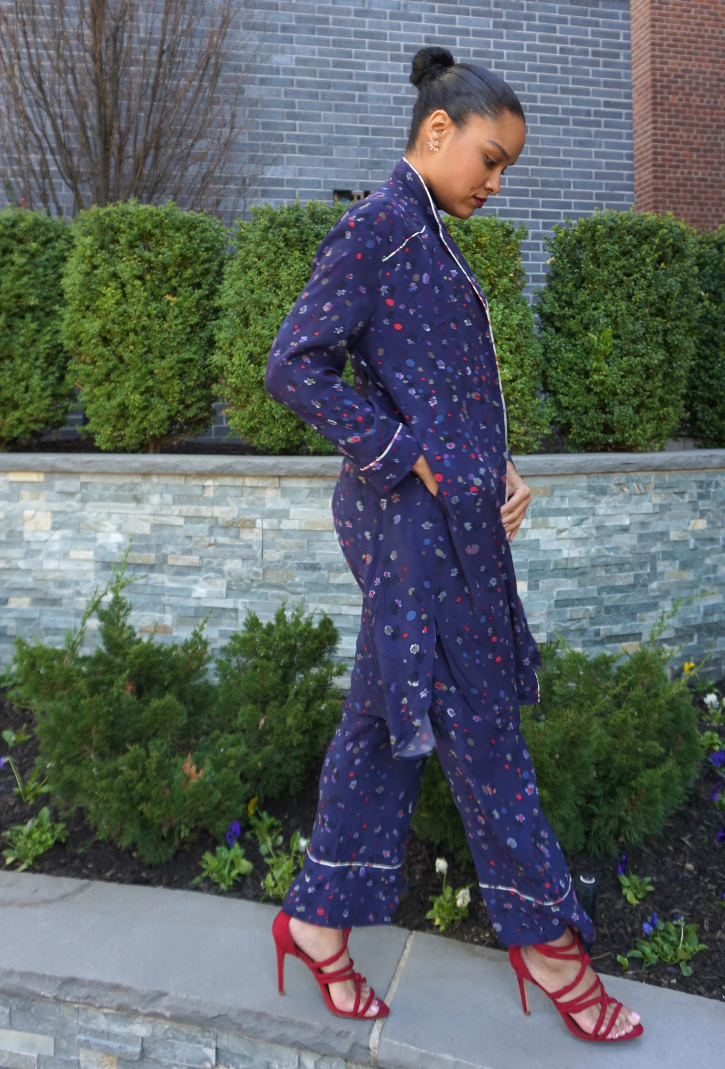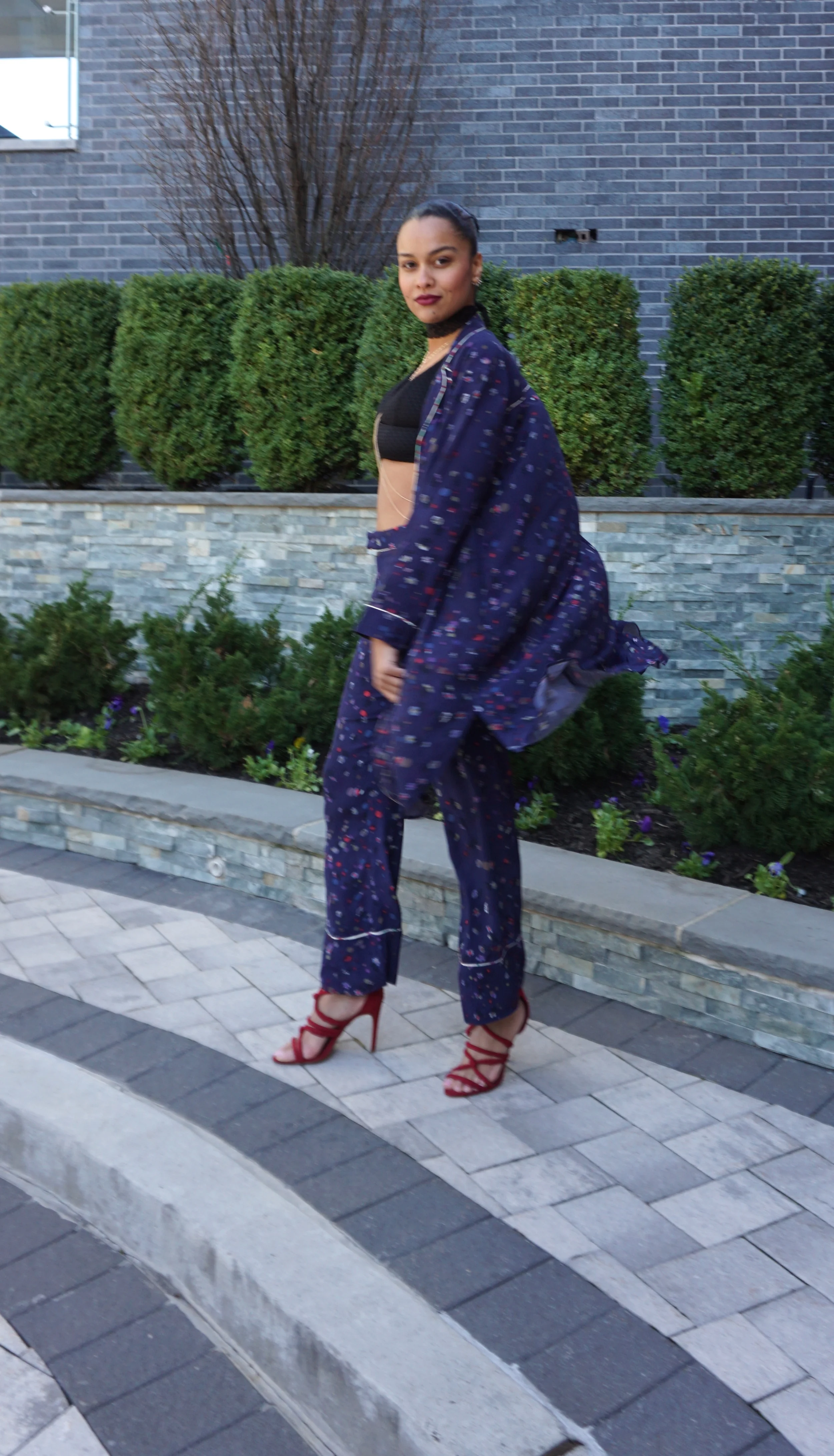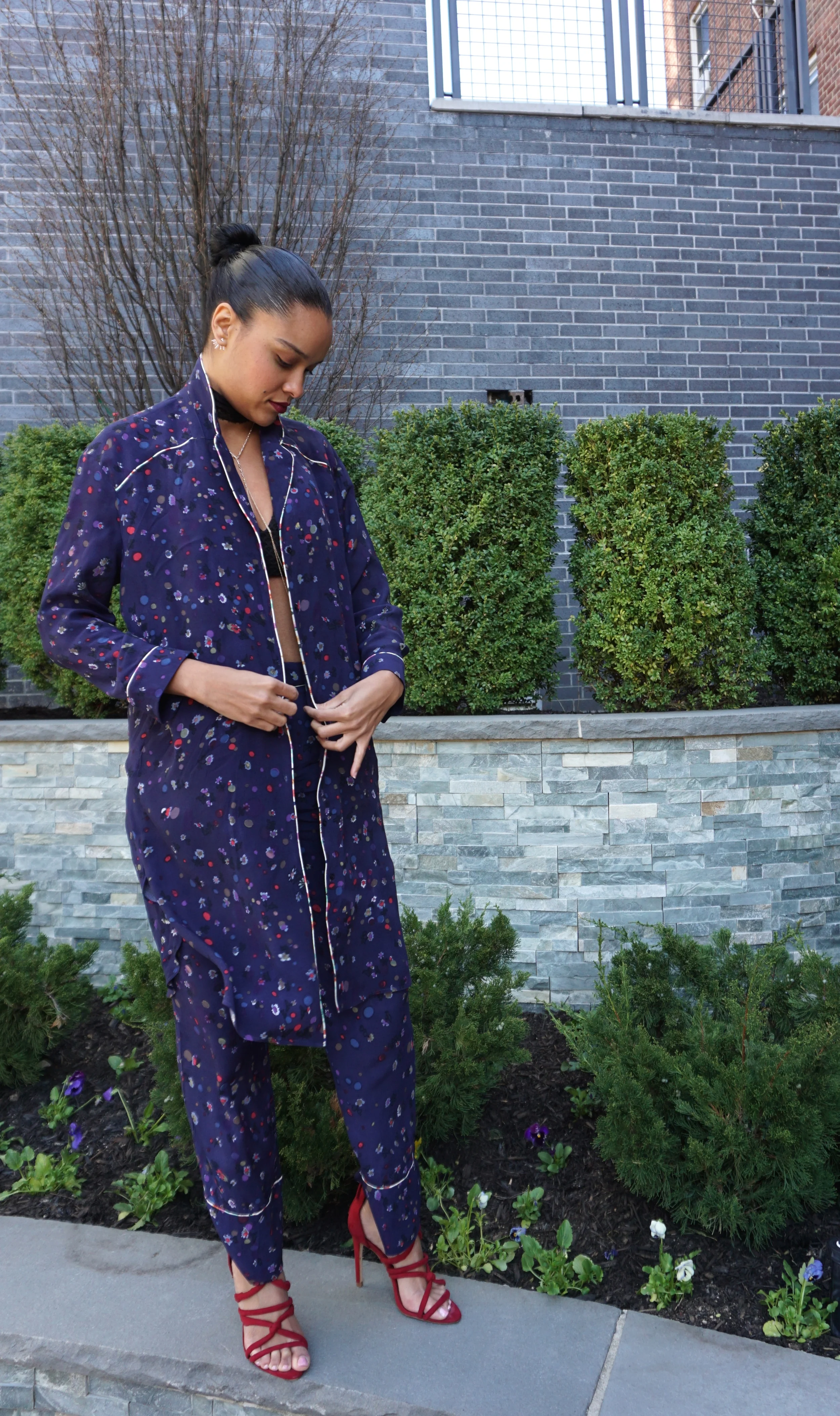While shopping, I locked eyes with this floral pyjama-inspired set and could not resist. How many times have you wished you could go outside in your pyjamas? Well this is the moment you've been waiting on since that time you wore your PJs to a 6 am calculus class.
