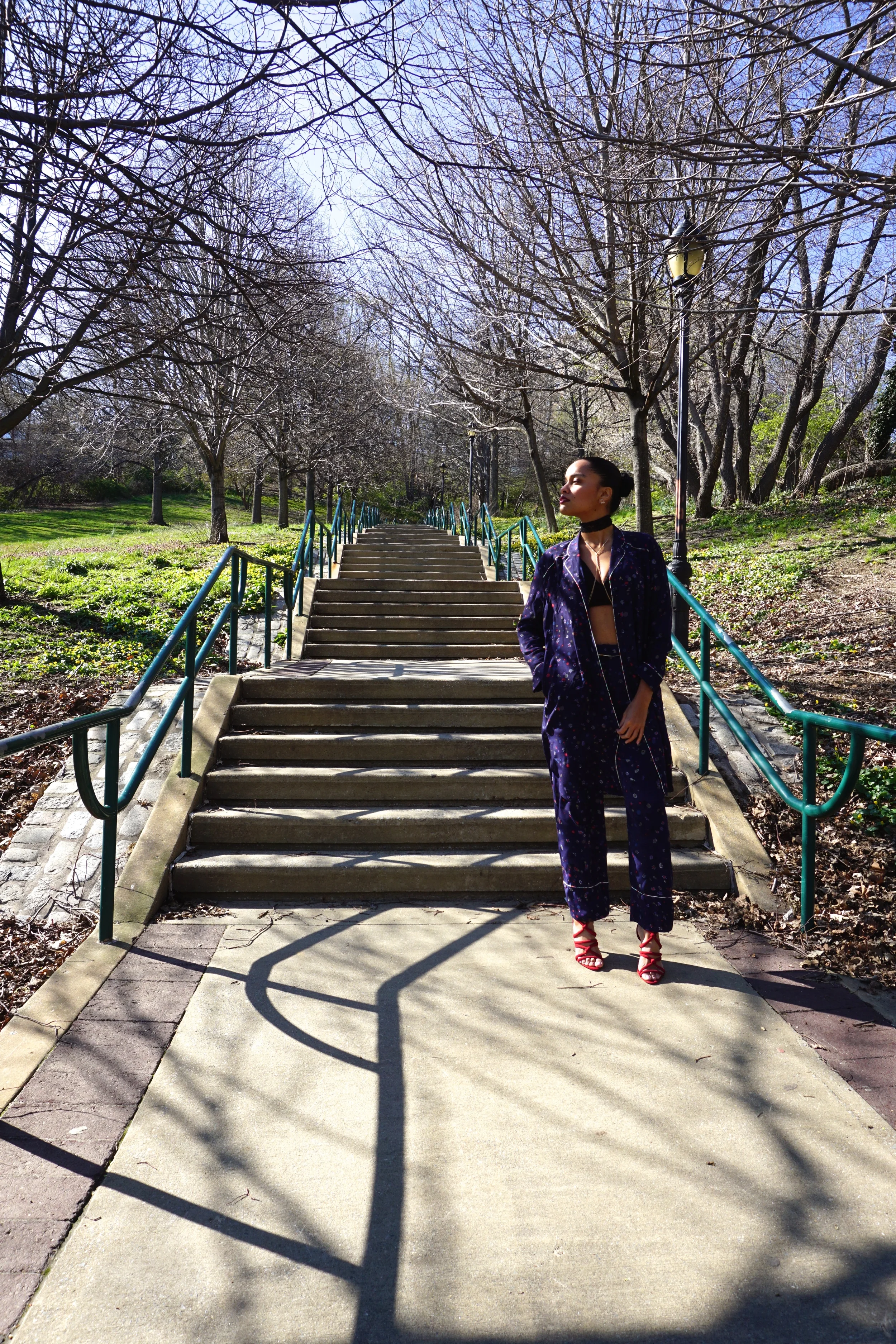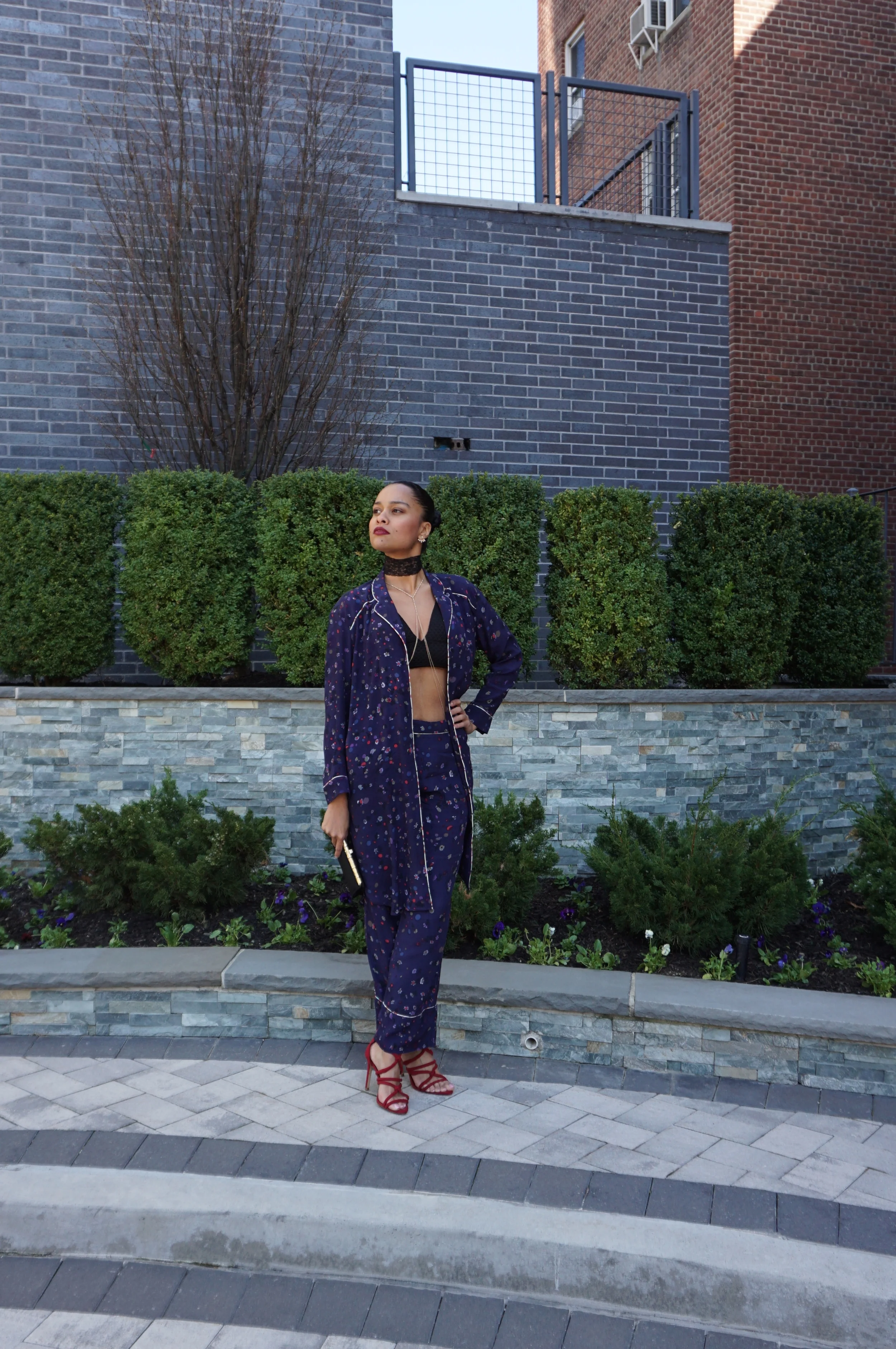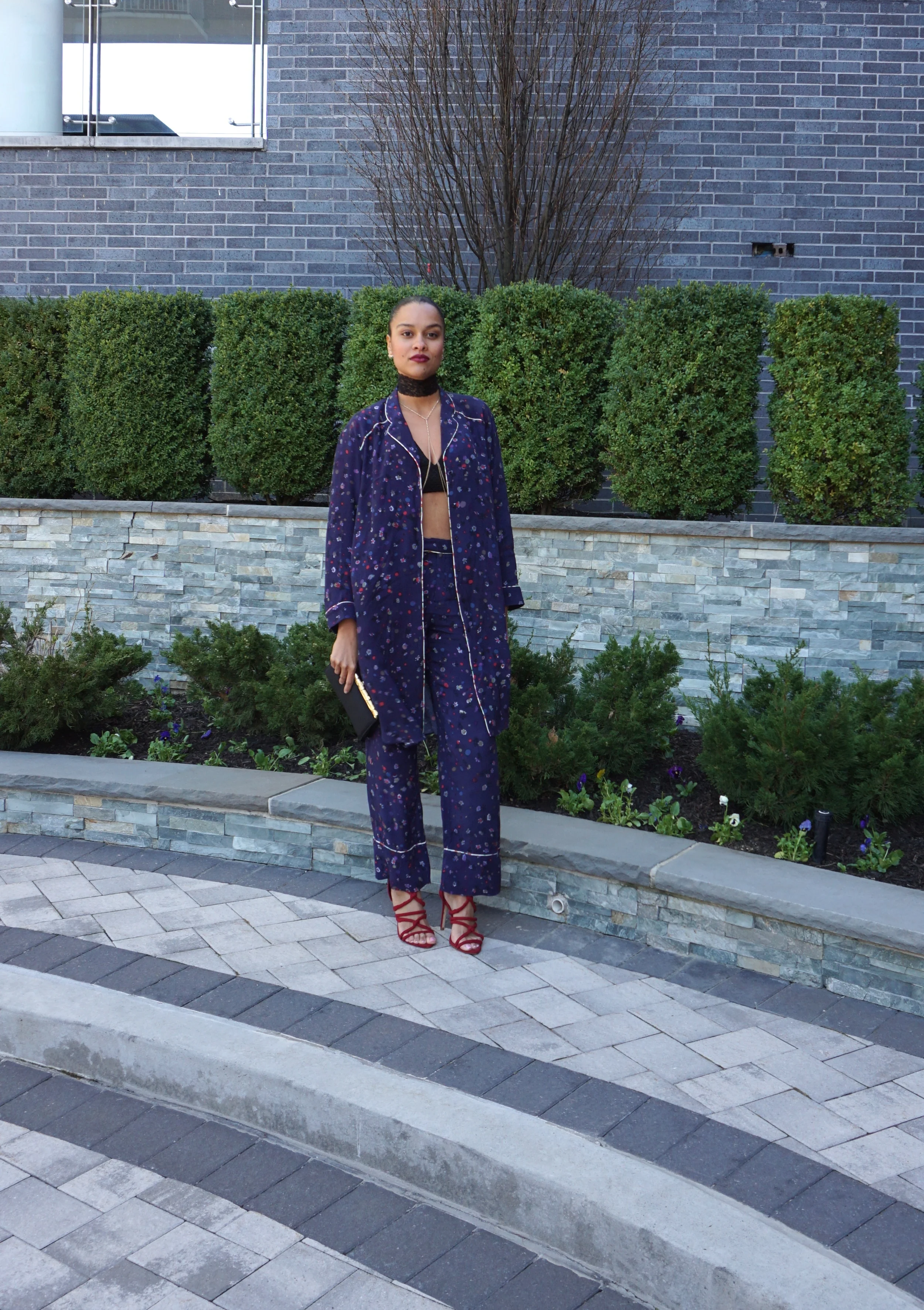 While shopping, I locked eyes with this floral pyjama-inspired set and could not resist. How many times have you wished you could go outside in your pyjamas? Well this is the moment you've been waiting on since that time you wore your PJs to a 6 am calculus class.