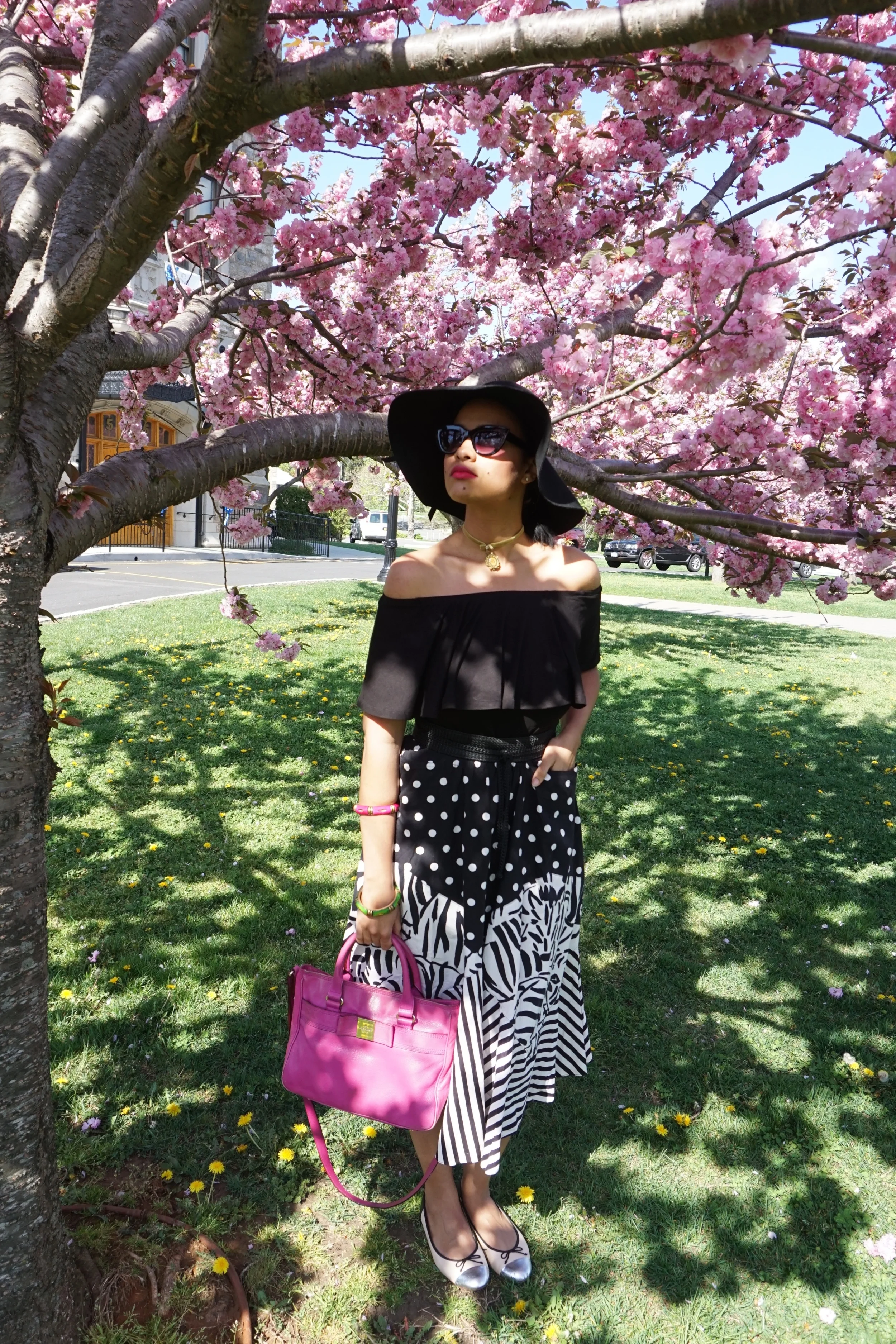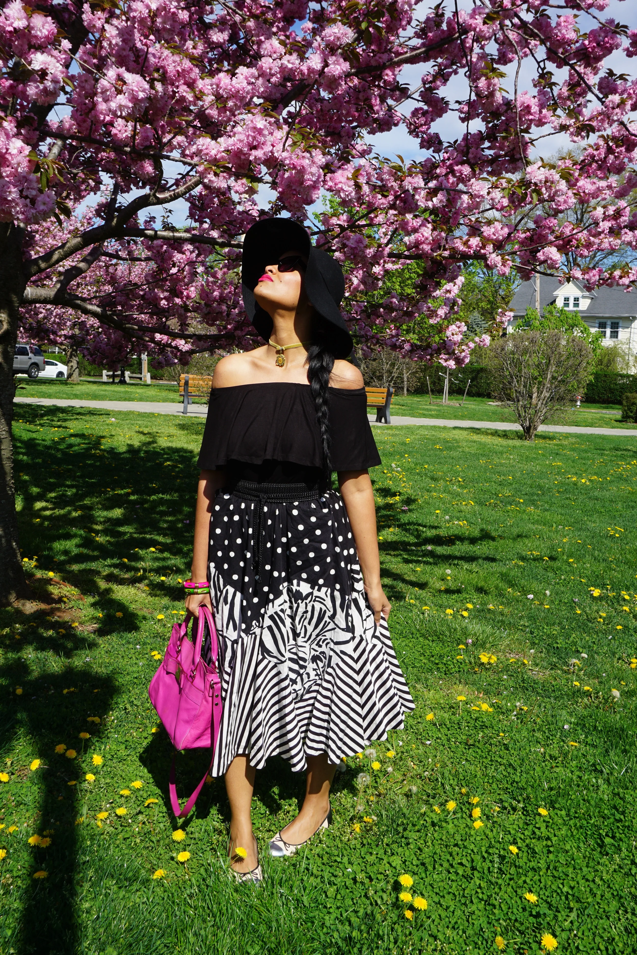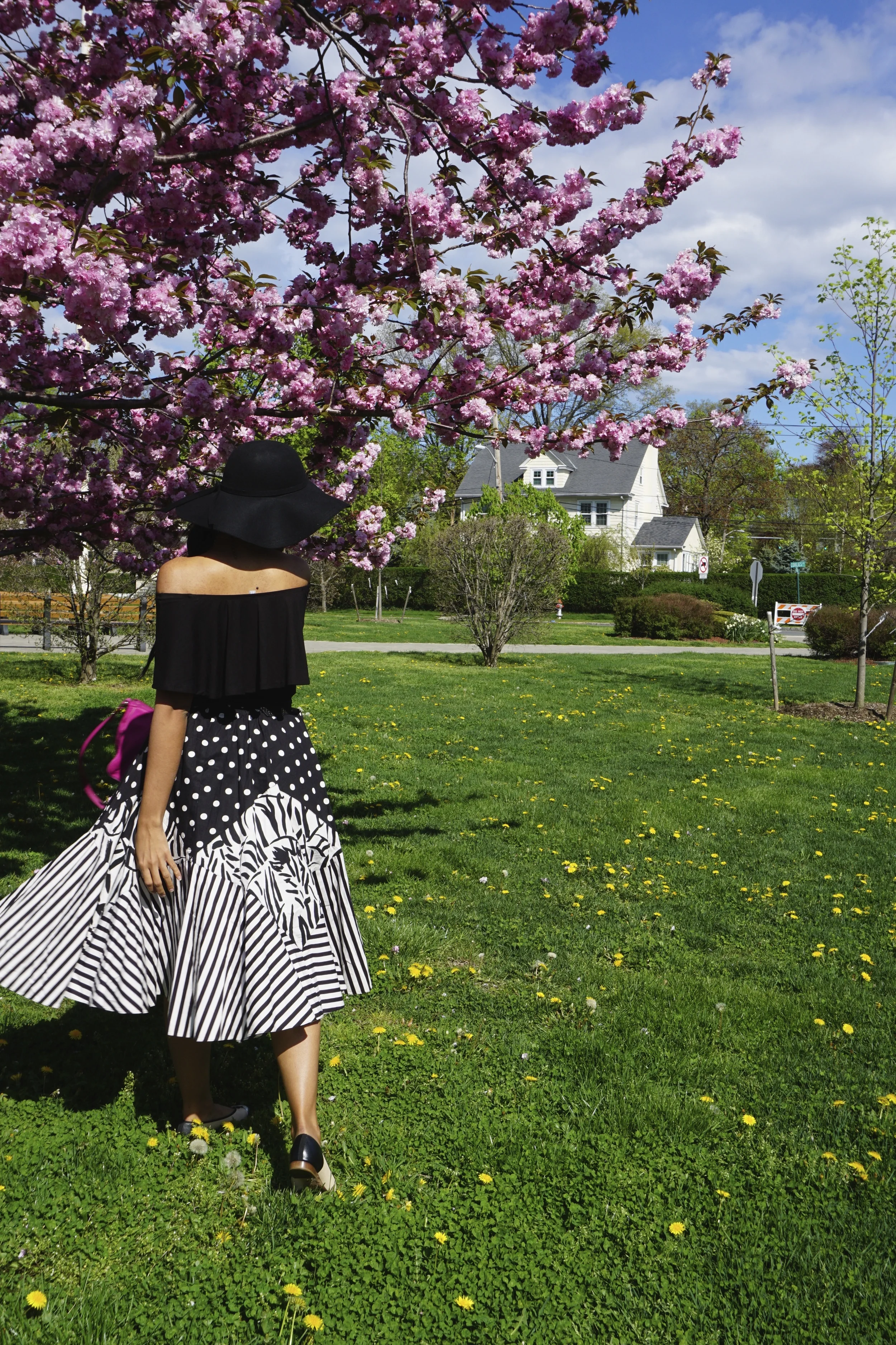 Flowers are blooming in NYC, the weather is warming up and I'm loving all of it. Spring is my favorite season after Summer and that shouldn't be too surprising given I'm a caribbean gal. While driving through a small town last weekend, I spotted these beautiful blossoming trees and decided to take a few photos of them which turned into me taking photos with them.