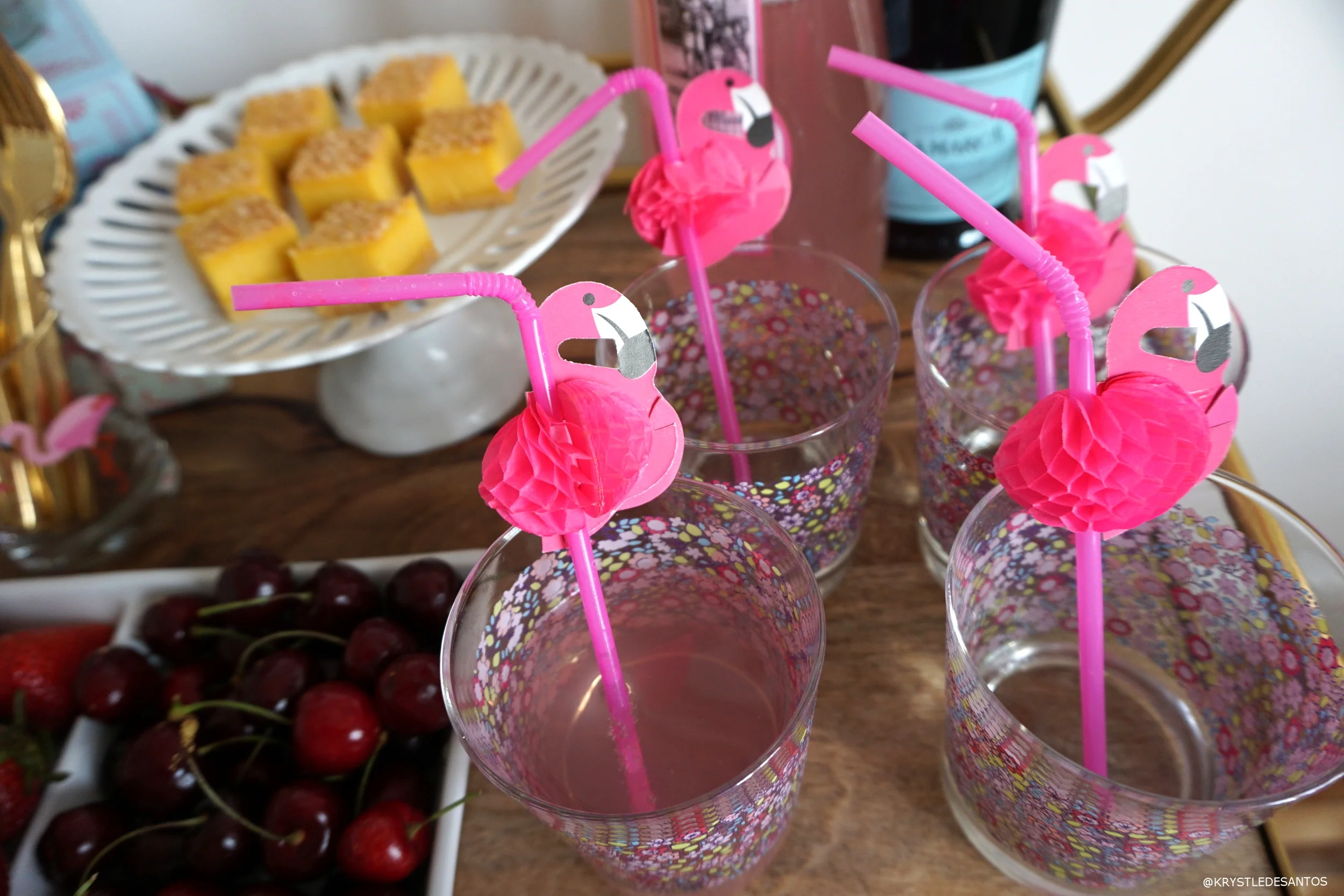 I'm very big on using items you already own for my bar-cart series and for this one I had mostly everything on hand. You're probably wondering who the heck has flamingo napkins on hand and all I can do it raise my hand. I purchased these napkins from IKEA during the summer of 2013 and I have to admit that this is my first time using them. Don't judge me, I suffer from grandma syndrome where I save all my pretty pieces for special occasions. The glasses are also an old collection from IKEA and the single flamingo glass is the only one left from the set. IKEA, if you're reading this bring back your flamingo collection; pretty please and thank you.