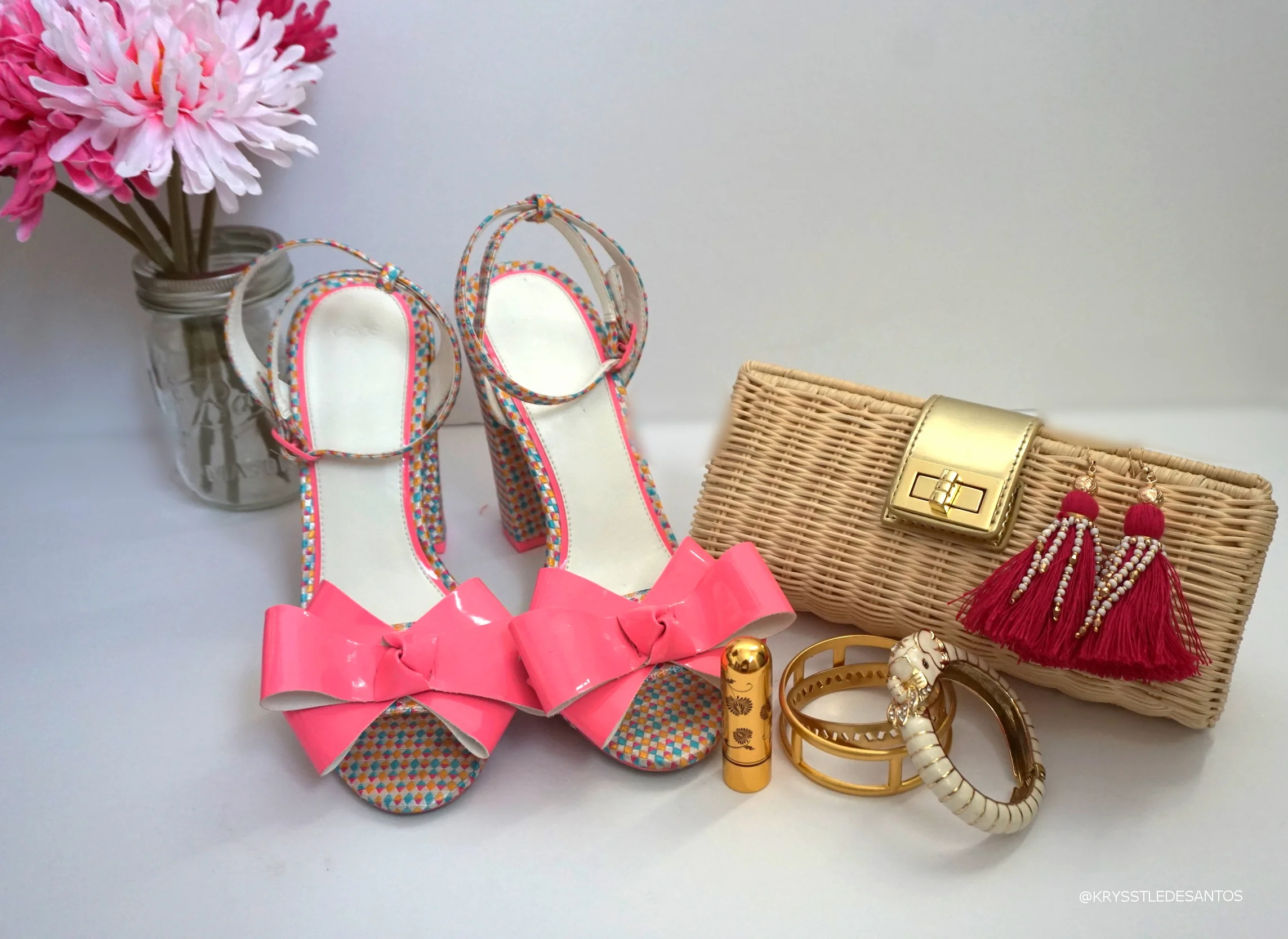 For the style portion of this post, I finally wore this flamingo print skirt I purchased a year ago (another case of grandma syndrome.) I styled it with a bright pink tank top, retro style bow heels, pink tassel earrings, an elephant hinge bracelet, wicker clutch and dusty pink sunglasses. Pink lips were a must and I'm wearing one of my favorite vintage-inspired lipsticks from Besame cosmetics. It's a "bright bold flamingo pink from 1955 with a semi-matte finish."