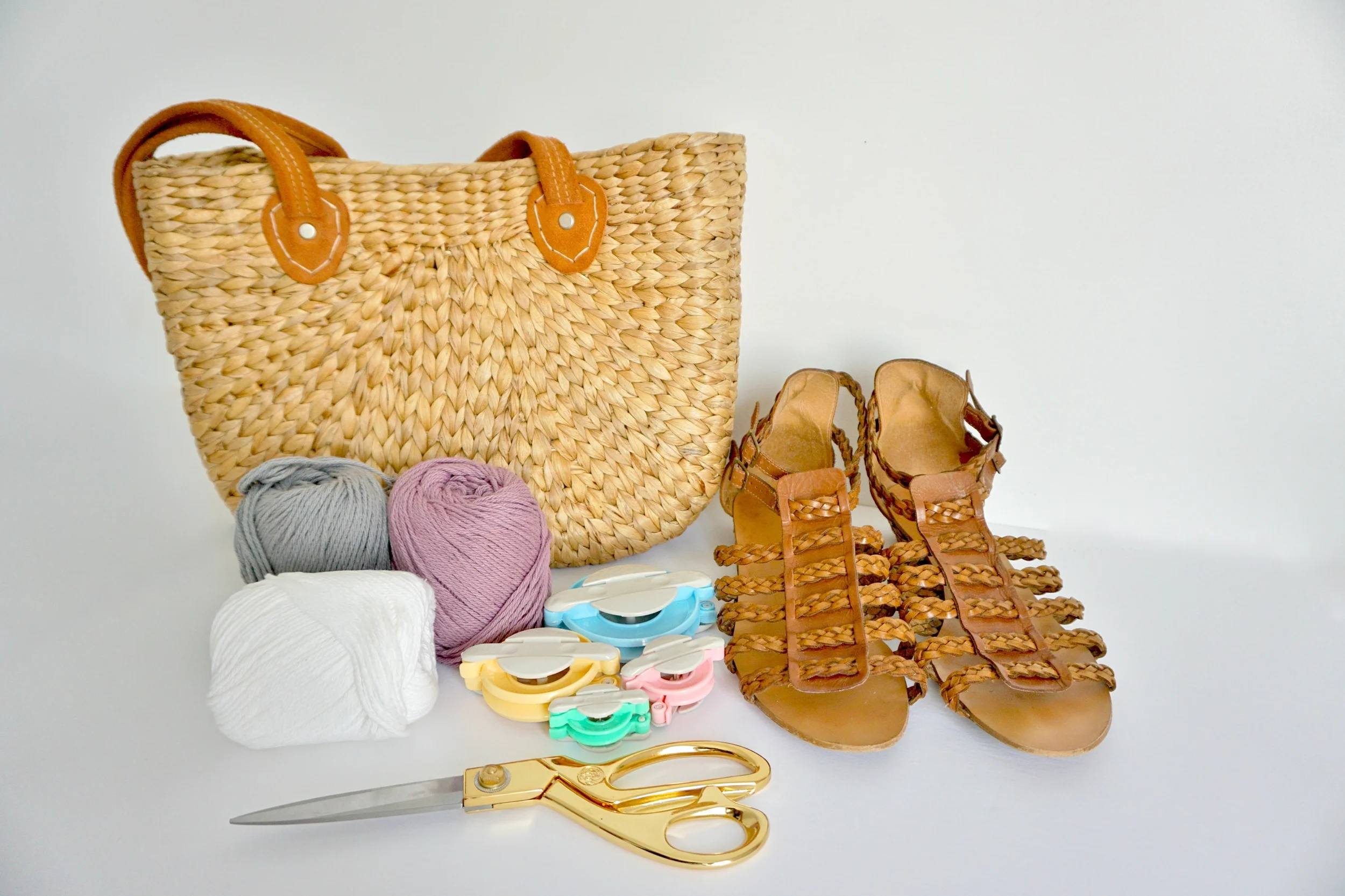Earlier this season I created a video for some simple colorful DIY pom pom heels and today I'm sharing another tutorial for pom pom shoes with a matching bag charm. You've probably seen the trendy brightly colored pom pom sandals around but for this DIY I wanted to mix things up a bit. I decided to use muted colors that would go well with my 4+ year old tan leather sandals. This is a good way to refresh a pair of shoes that you've had for some time.