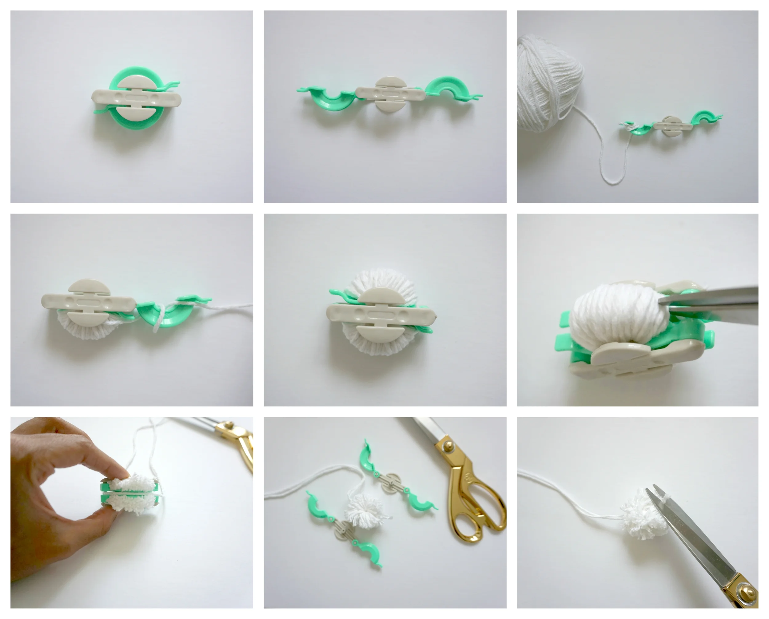 Let's begin with small pom poms for the sandals. I used the smallest pom pom maker from the set (the green colored one).