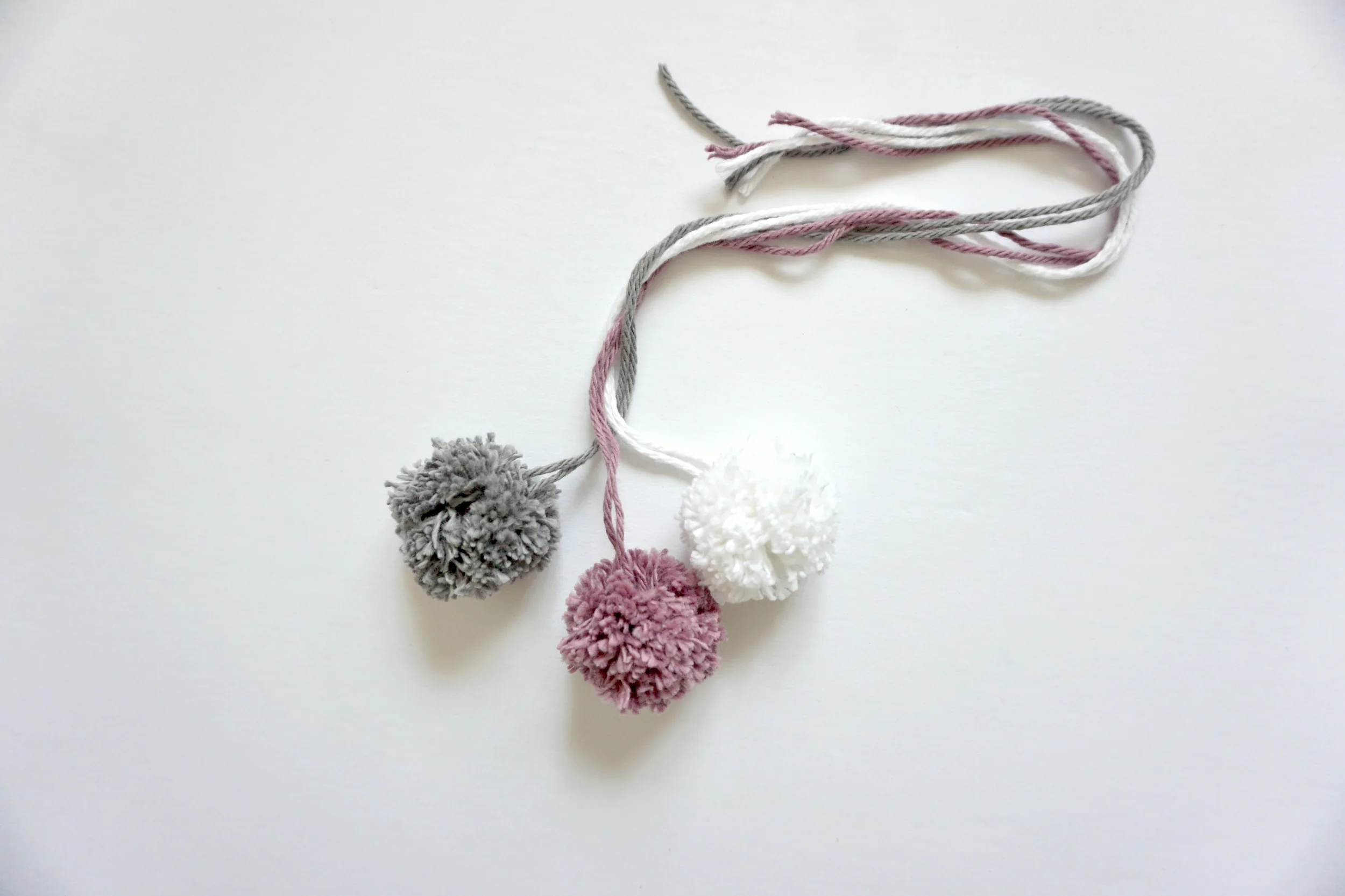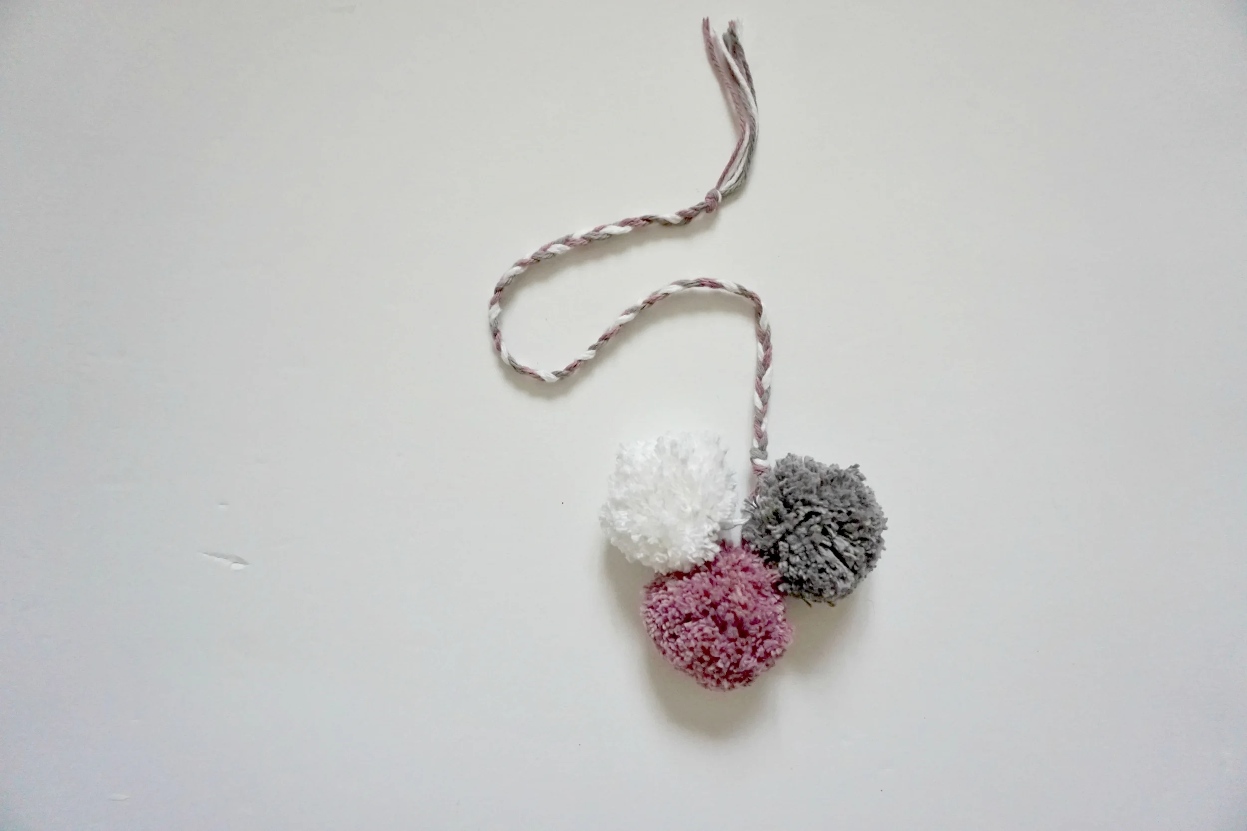 Braid the loose ends of yarn to create one long string and secure the end with a knot. Now it's time to enjoy your matching pom pom set!