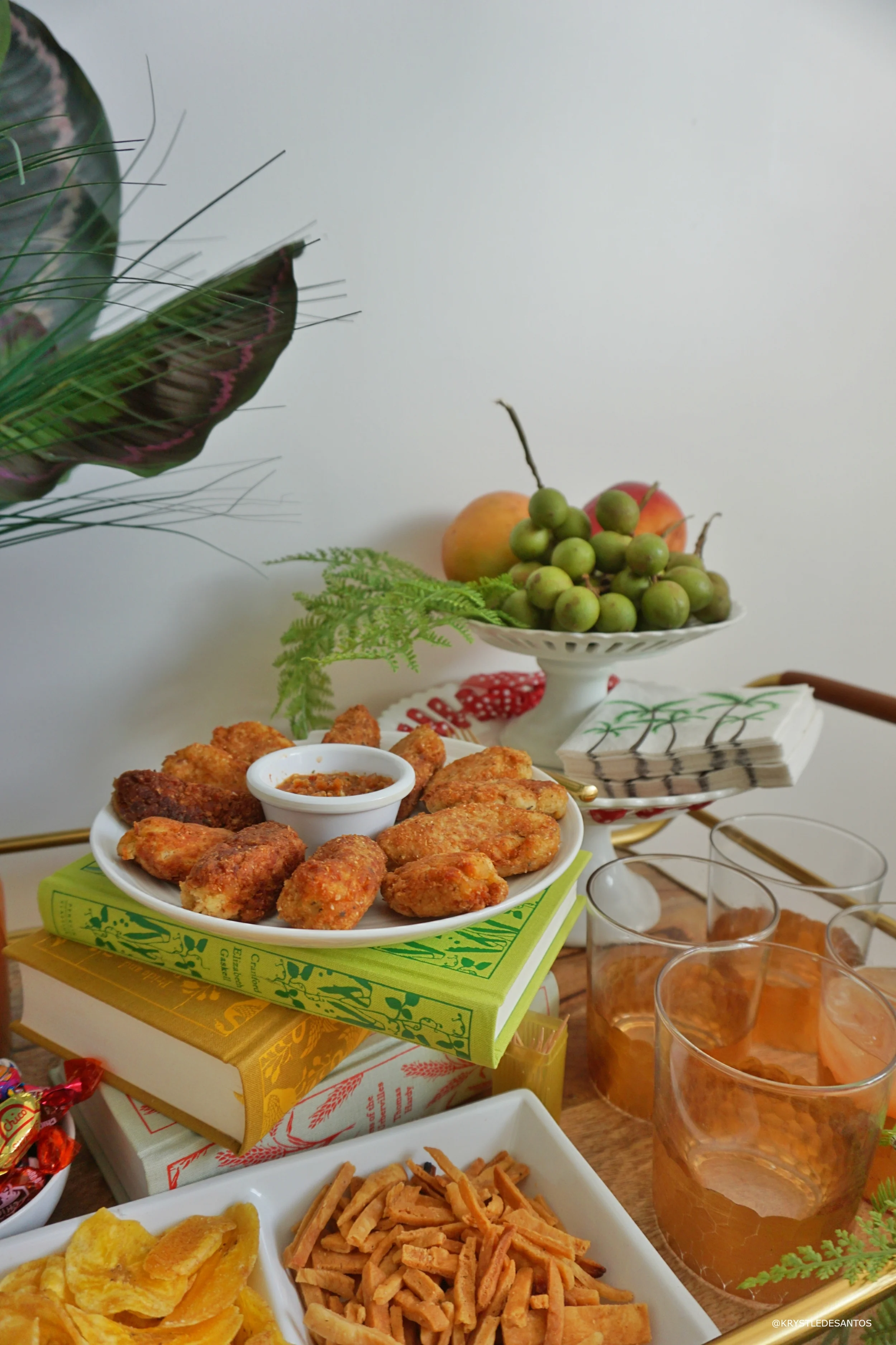 Let's continue talking about the most important part of this Guyanese bar cart; the snacks and drinks! I wanted to do a combination of sweet and savory eats. My sister sent treats directly from Guyana to me with our friends (thanks Christine & Dominic!) and I'm so excited to share them with you and by share I mean show you pictures, lol! All the snacks for meeeee!!!!!