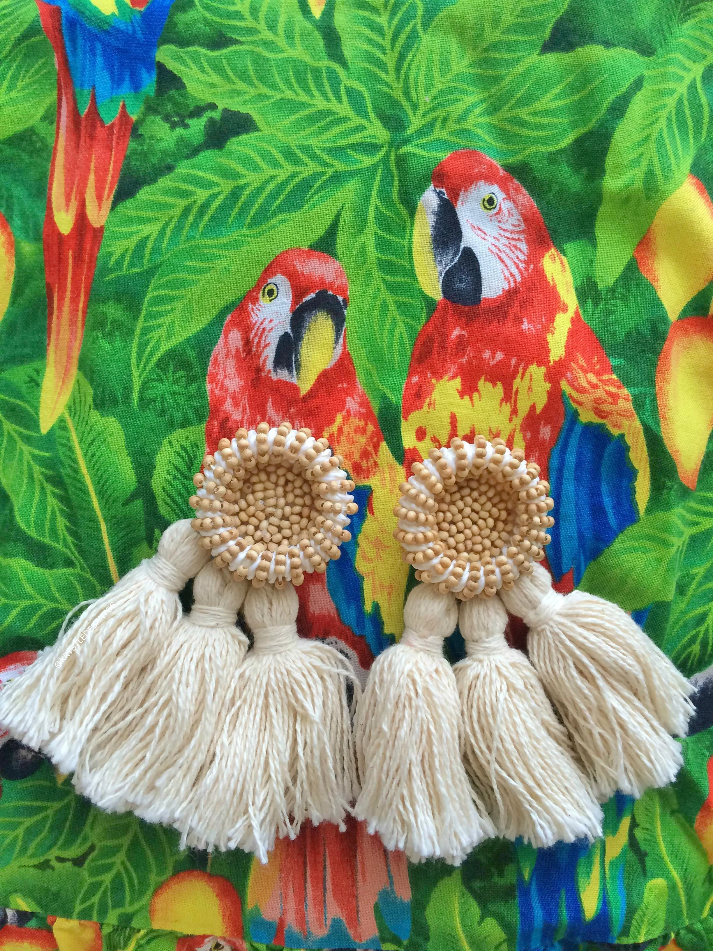 Close up shot of the natural tassel earrings handmade by moi!