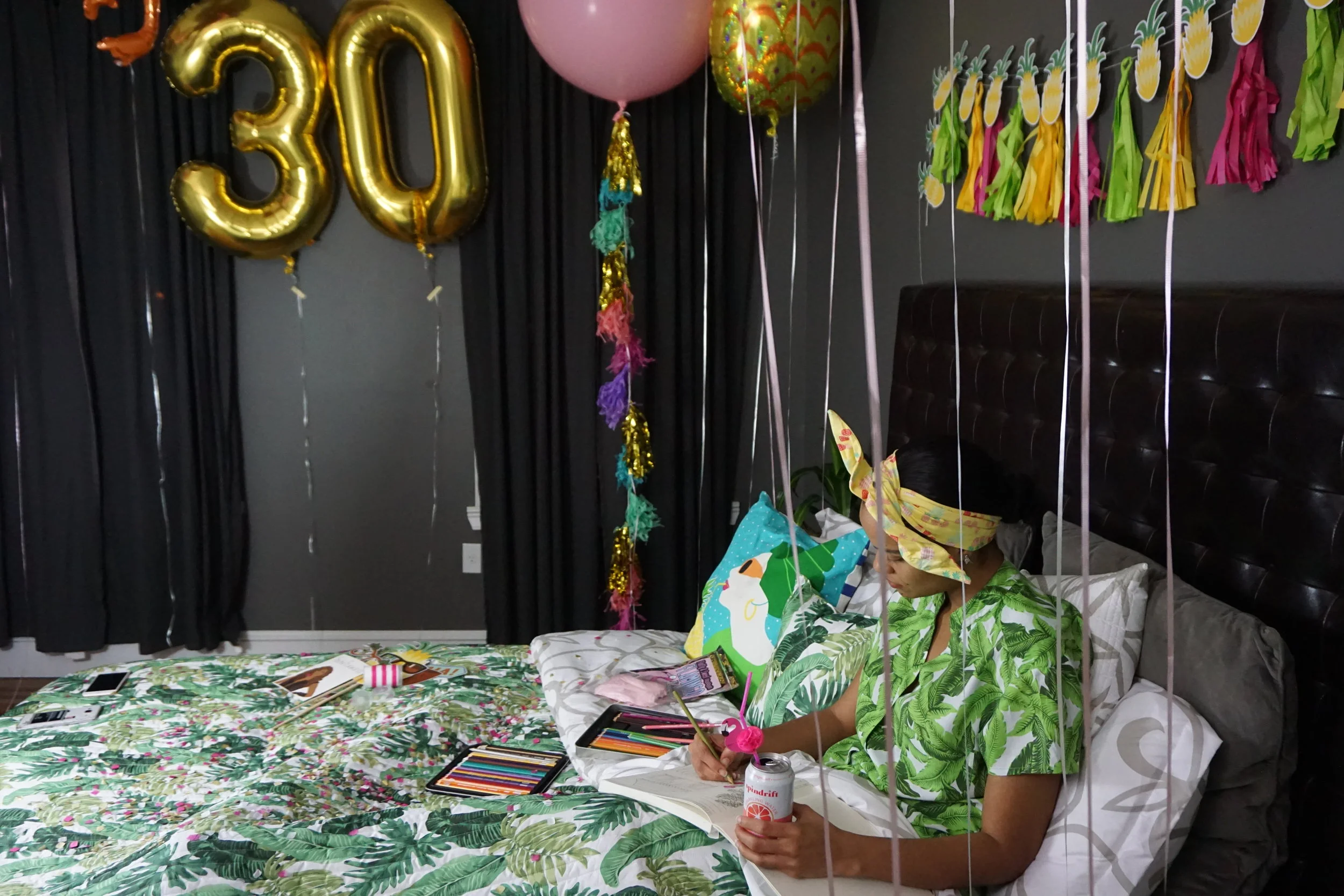 Saturday I woke up to a room full of balloons and tropical decor. Thank you so much for my balloons Stef!