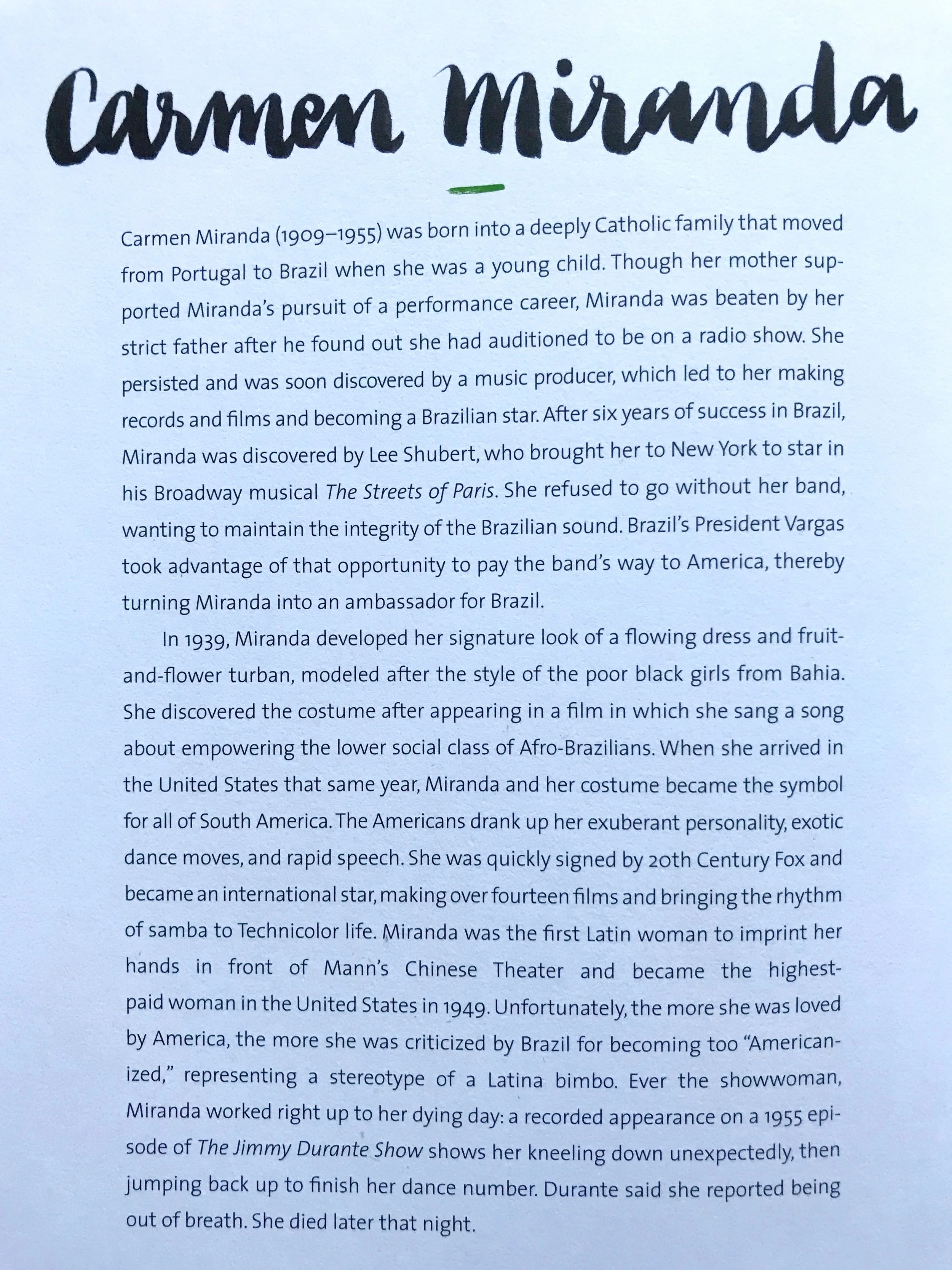 If you'd like to learn more about Carmen Miranda, you can read my post here or check out an excerpt below from one of my favorites books Bad Girls Throughout History.
