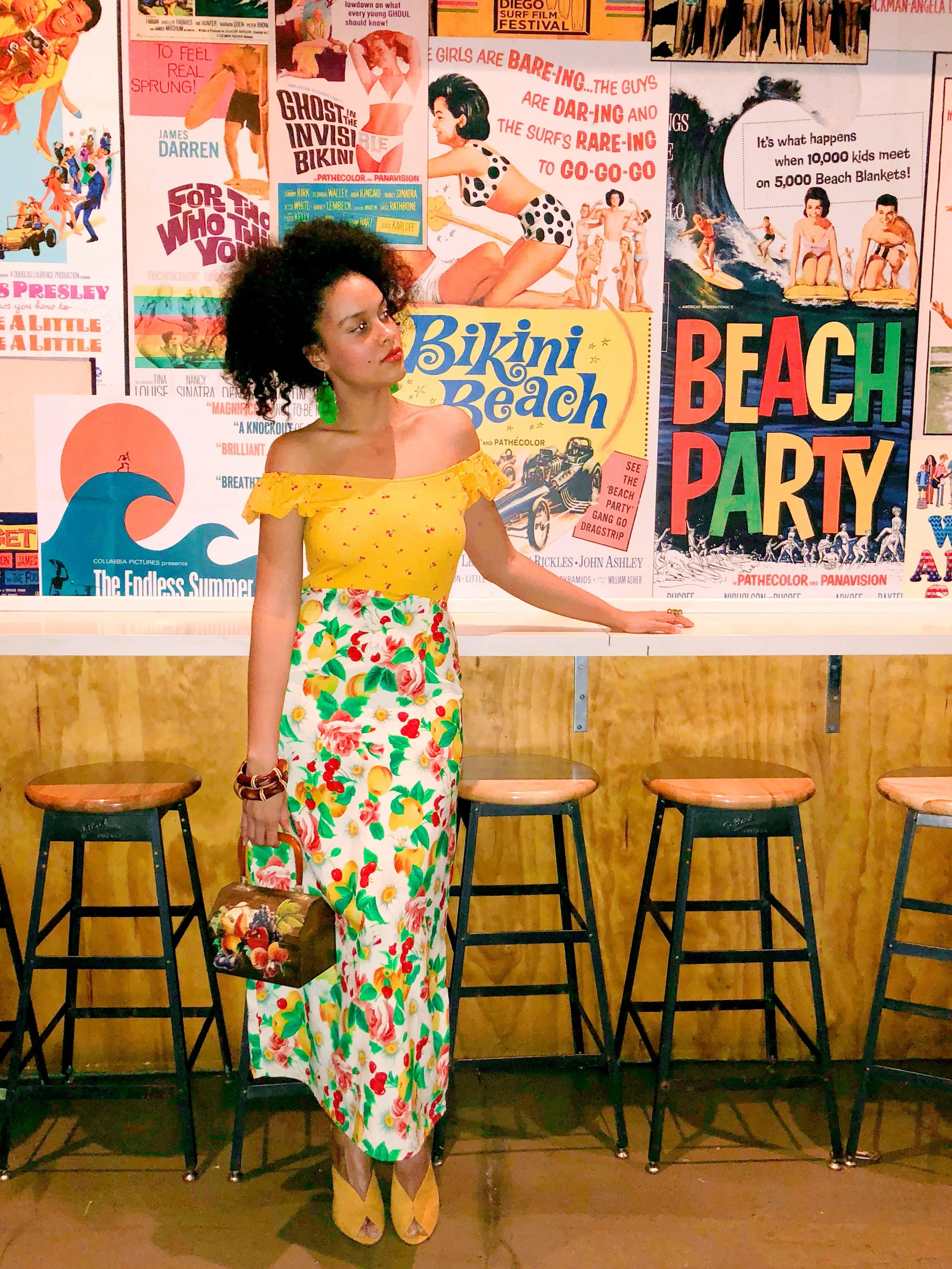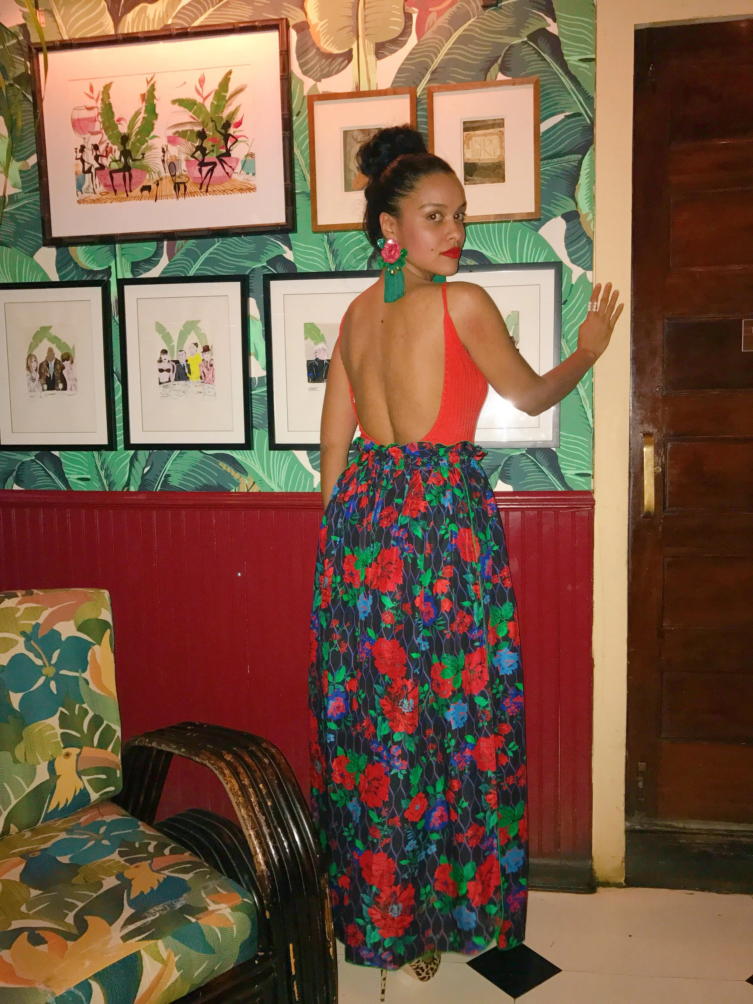 A dope 70's inspired lifestyle space with multiple floors for everything from dinner to dancing and in between. The Champagne Garden is my favorite room boasting banana leaf print, pink sofas and groovy tropical wallpaper. My girls and I did a night out for my 30th birthday and it was fun. Get the Banana Boat cocktail