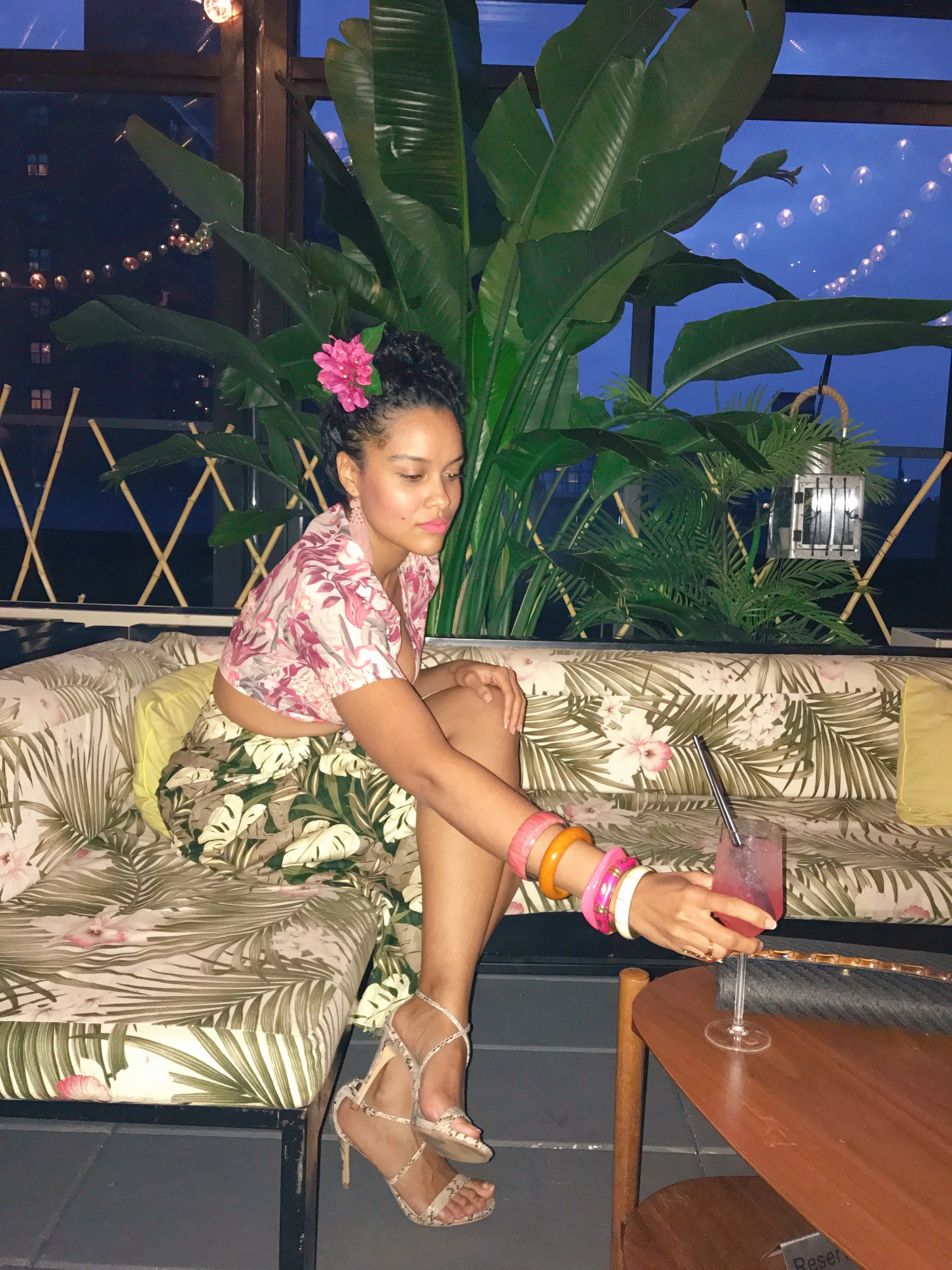 I have a tropical mind, body & soul (also the title for my debut R&B album), after all I grew up in Guyana with an average low temperature of 75 degrees so you can imagine my bewilderment during the cold months here in NYC. But here’s the deal, no matter how much I fret, I chose to live in NYC so I suck it up and also try to go on vacation during the Winter. Unfortunately, I can’t stay on vacay so when I’m not traveling to a tropical paradise, I’m always on the hunt for tropical-inspired places in NYC. It’s not only my favorite choice of decor but also helps to keep me happy because once I’m inside and away from the elements, I can pretend I’m where my heart truly belongs! I can imagine I’m back home in Guyana, even for a little bit.