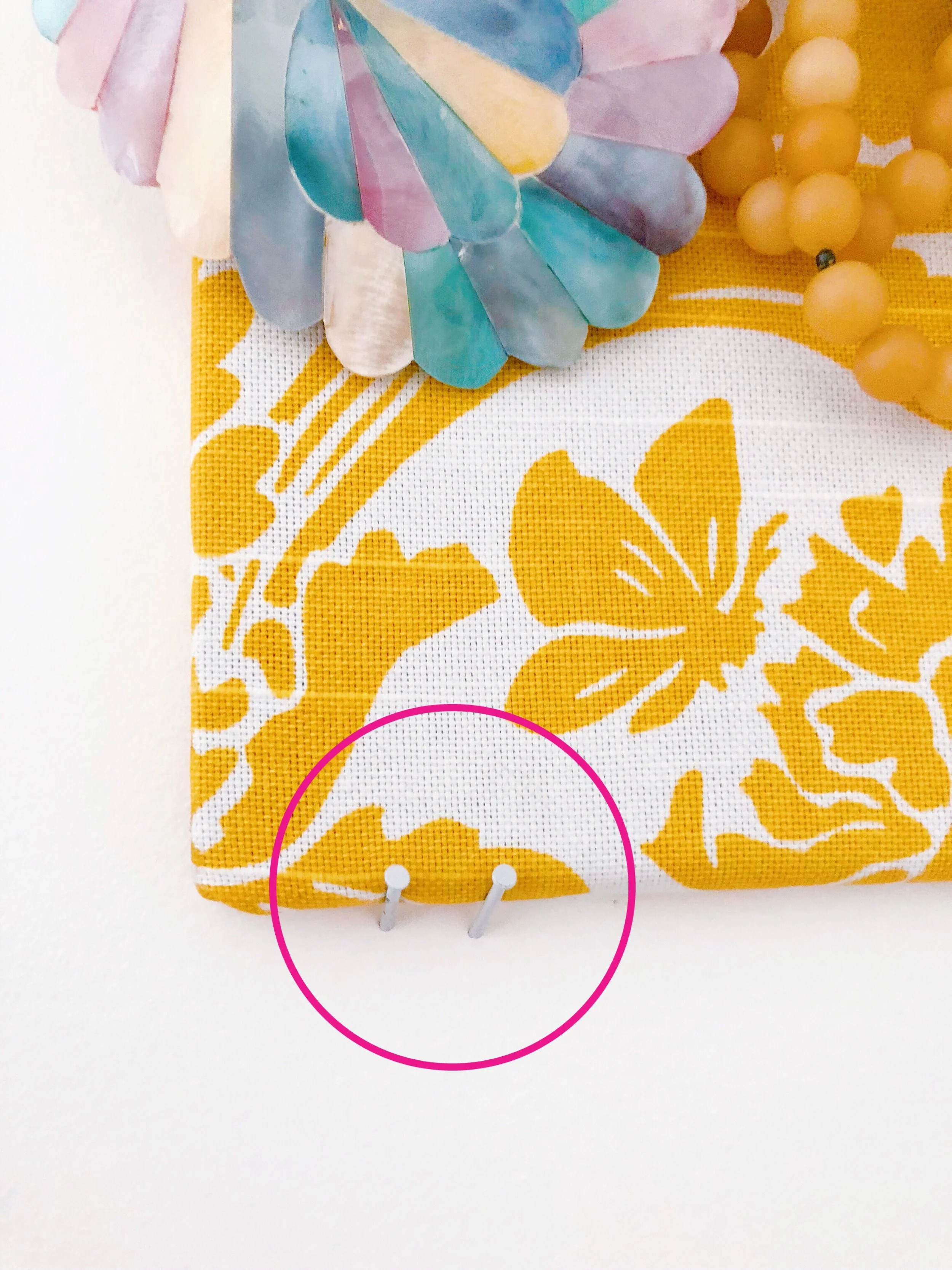 I used the sticky pads that came with my cork board kit but also added a couple nails to support the weight of the boards with necklaces. This step was crucial for me because my board came crashing down when I didn’t use the nails!