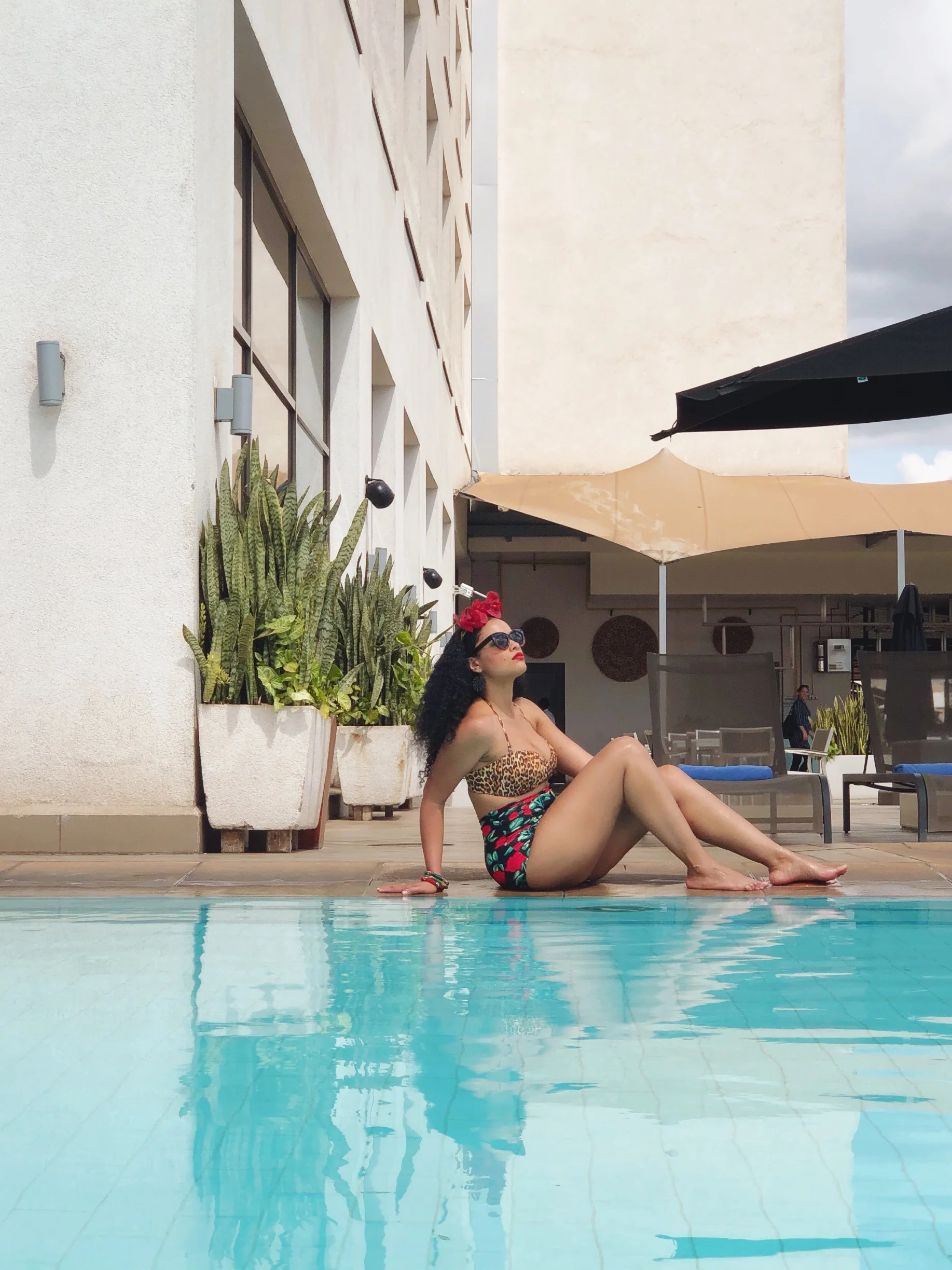 More to come on my Africa trip pretty soon but if youโve been following me for a little you might remember me rocking my leopard two piece in Colombia and my retro rose-print bikini in Aruba.