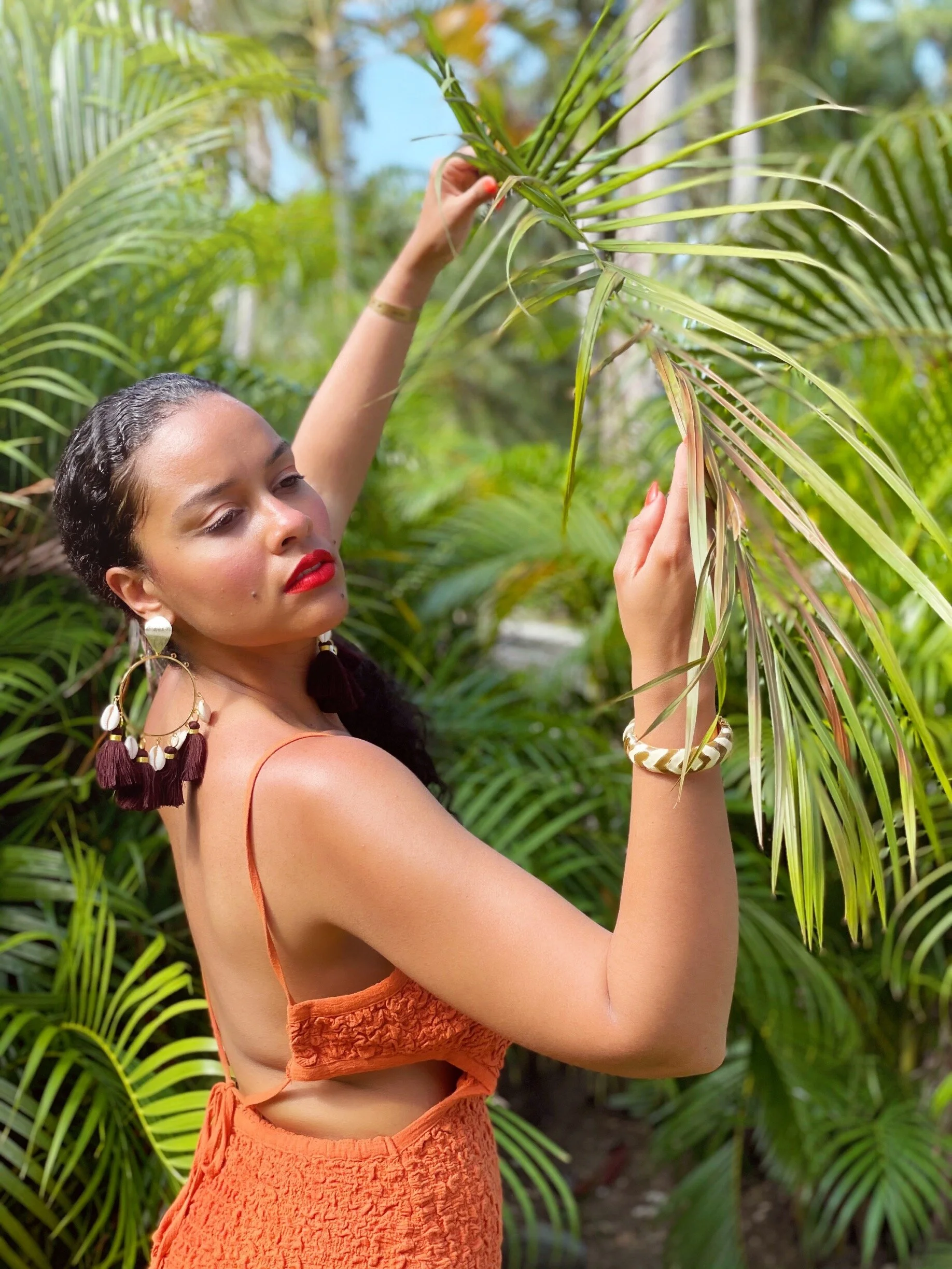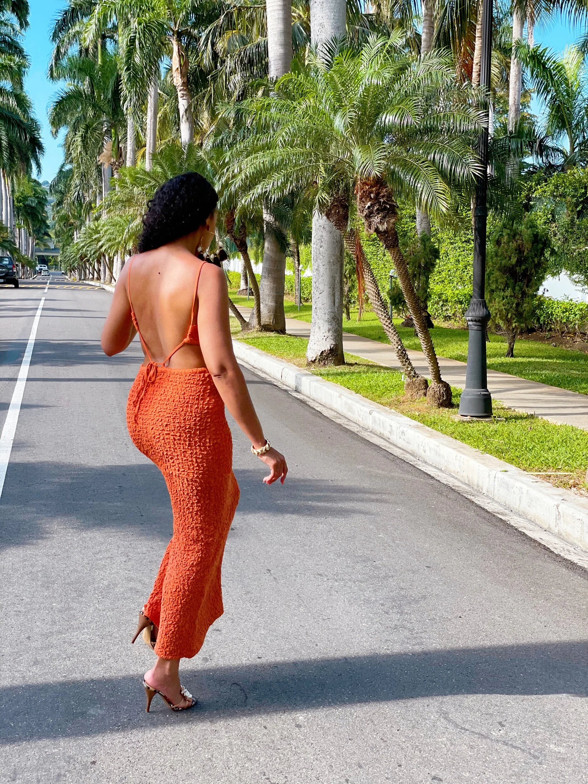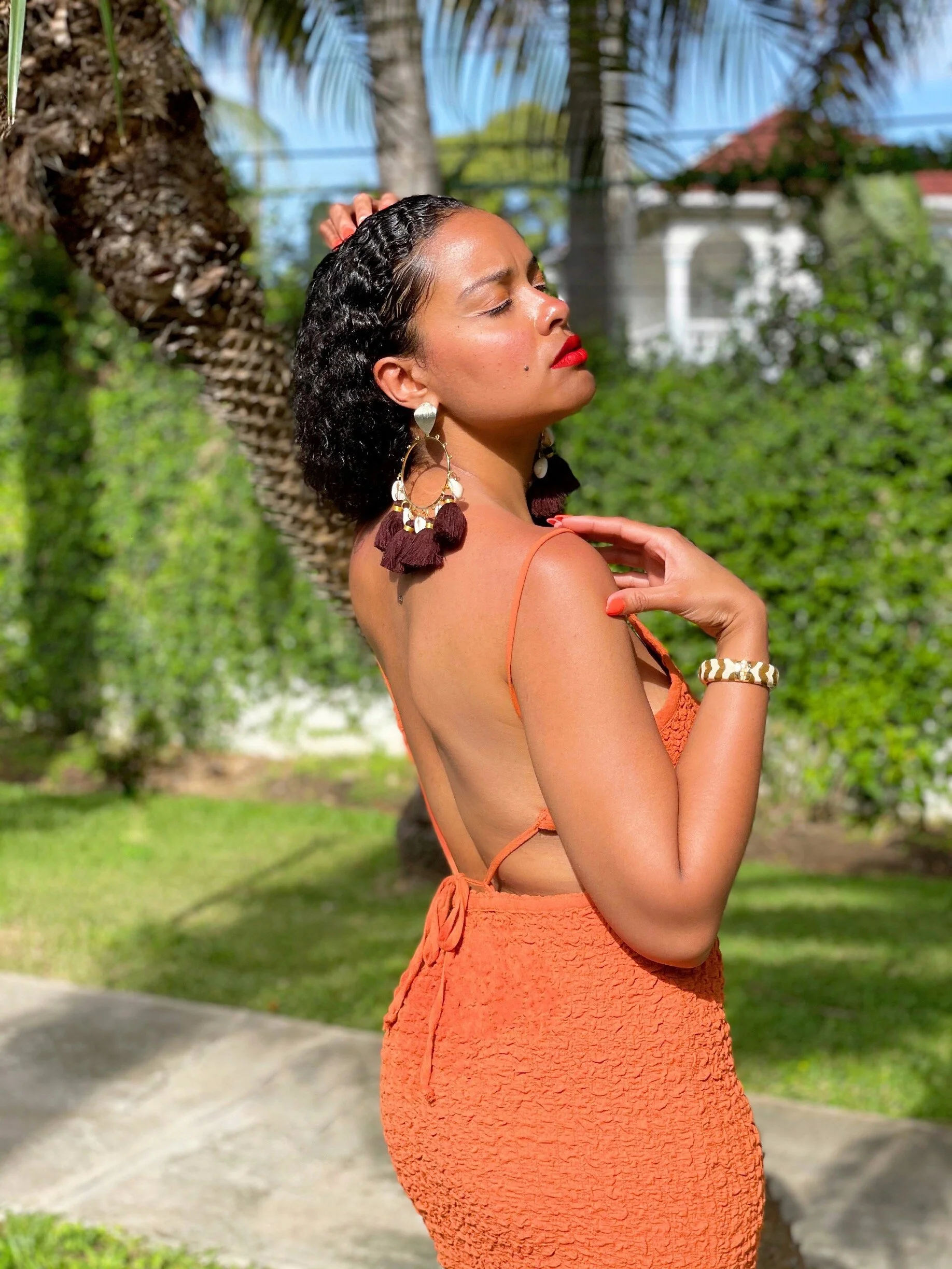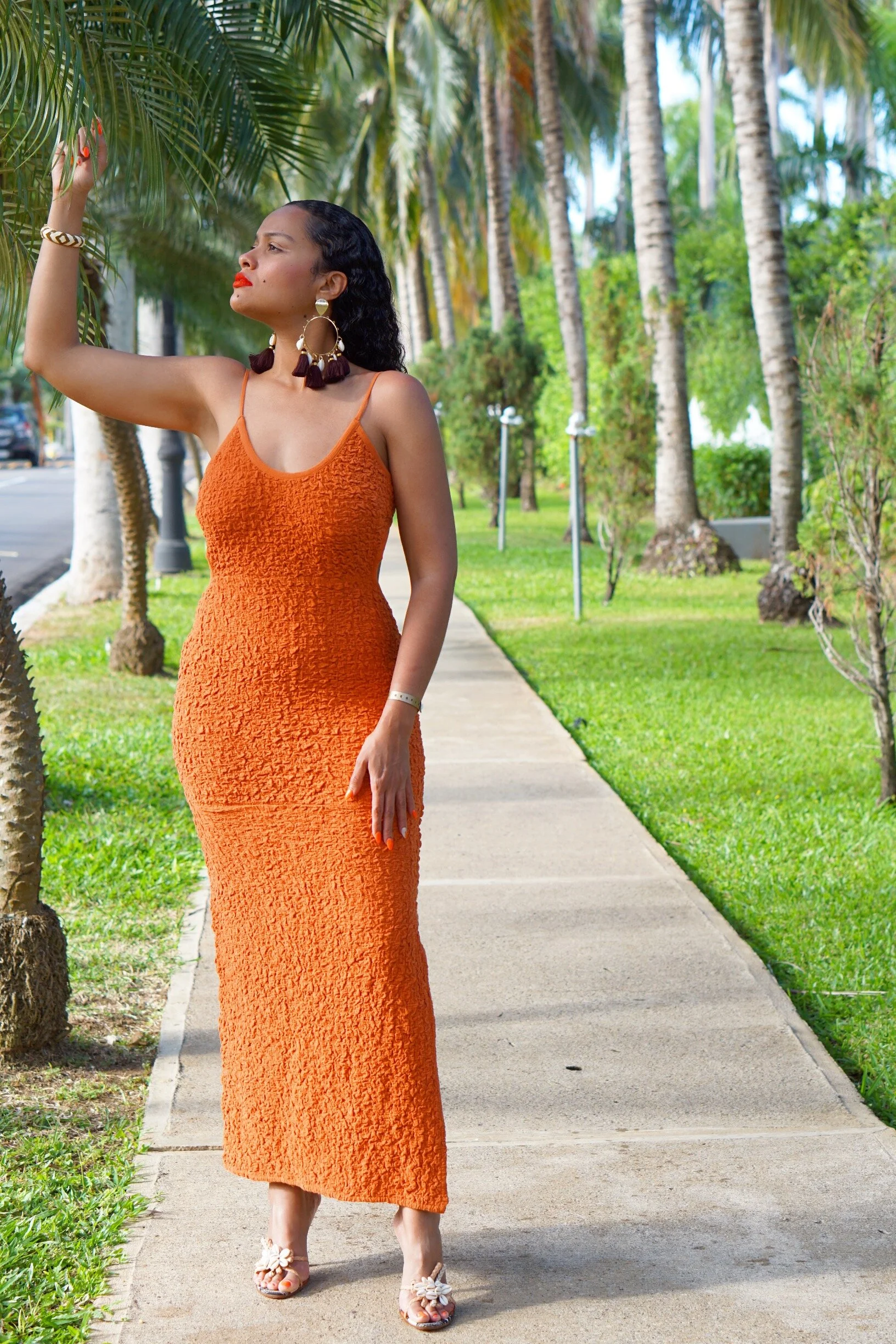 Anywhoo, this dress is absolutely amazing! I love the burnt-orange/spice hue and how it hugs my curves in all the right places. It’s giving sophisticated-sexy; spicy tropical-glamour!