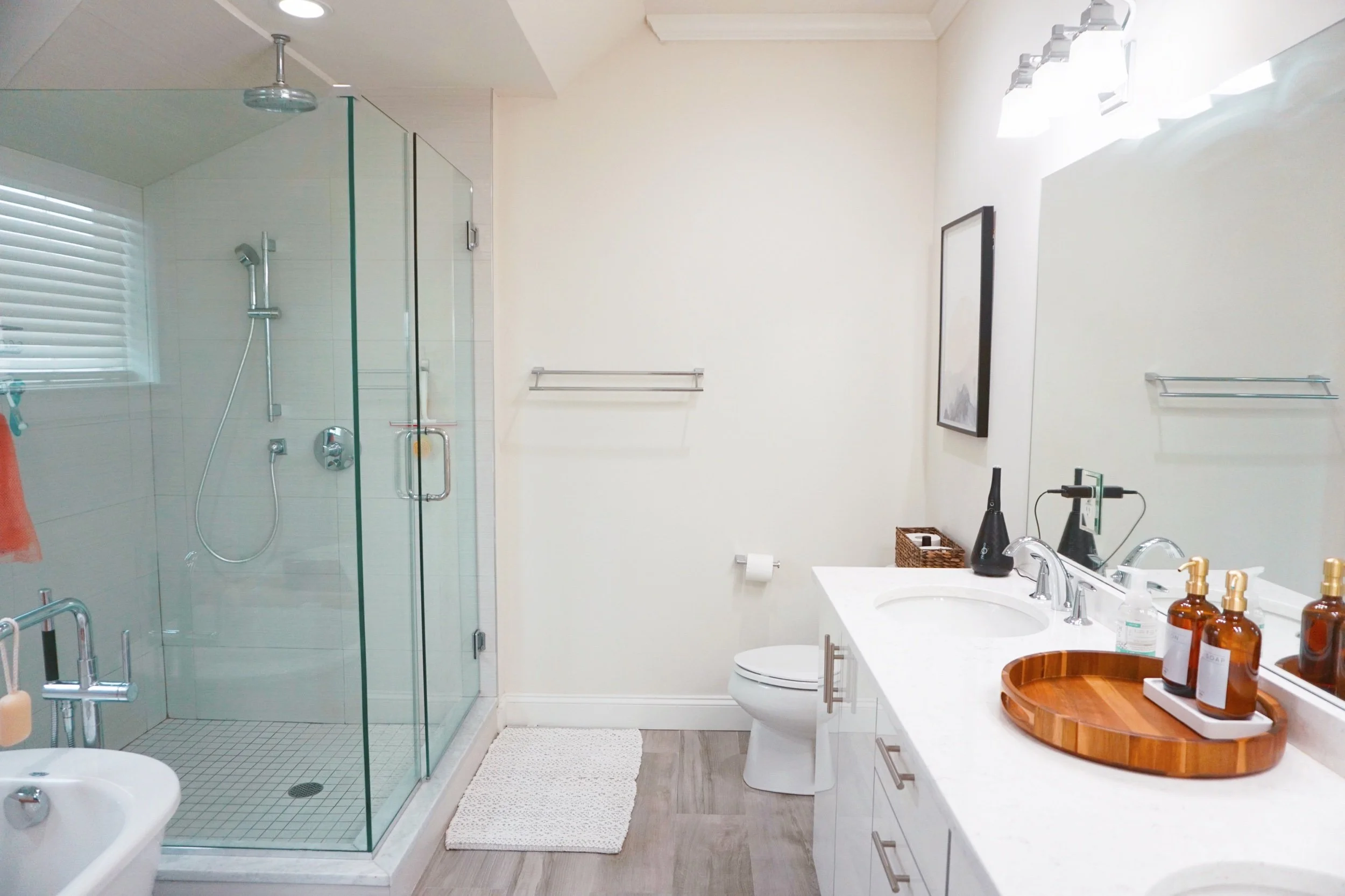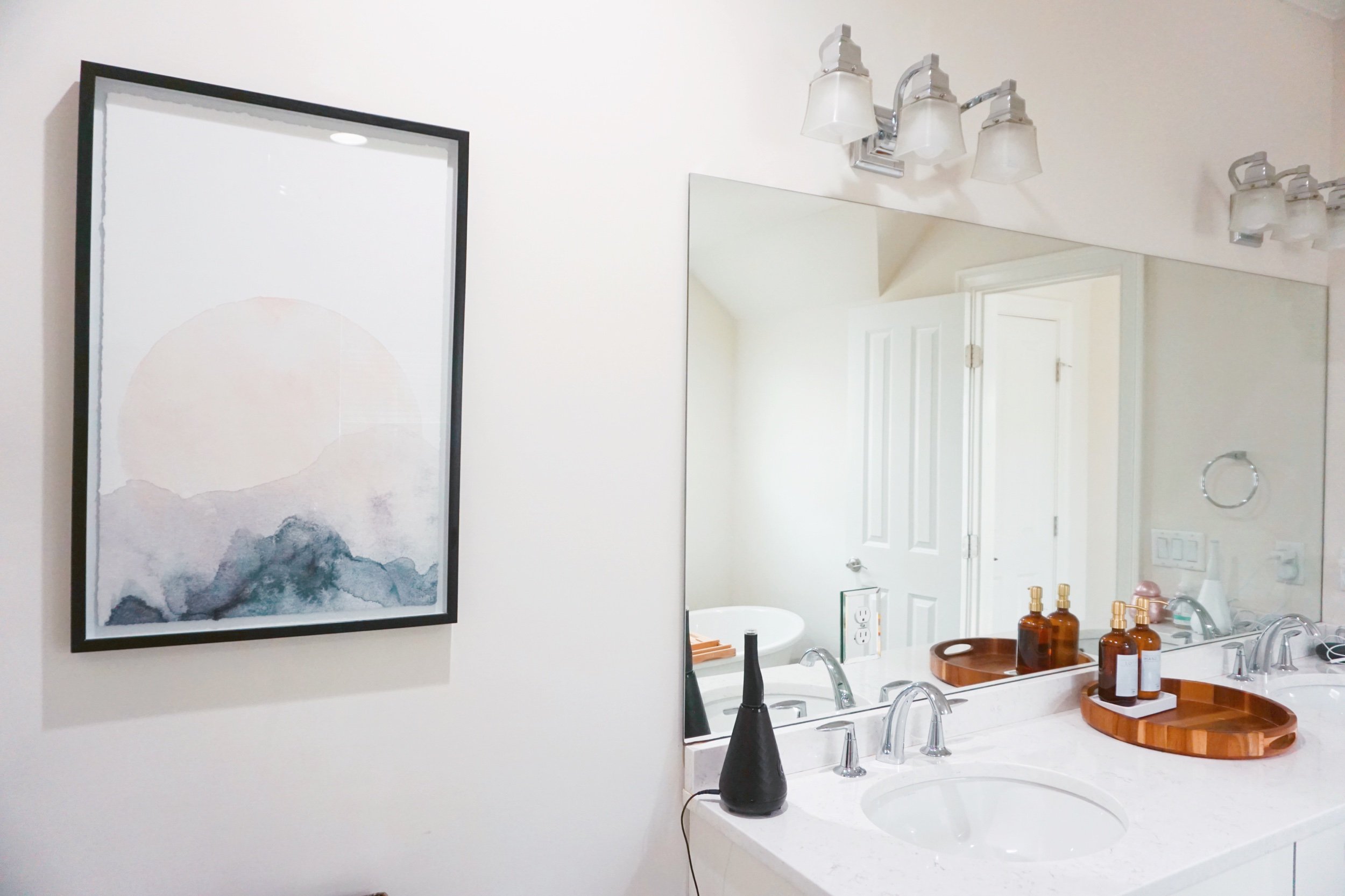 The bathroom was done in a simple way to evoke tranquility and though the room isn’t 100% complete I didn’t want to hold off from sharing.