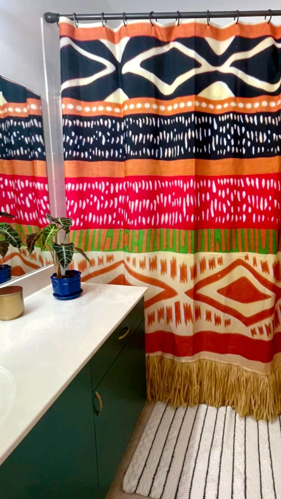 This was my first time doing an e-design concept and I’m happy to say it was a success. The process began with Casie sending over art that you’ll see at the beginning of the video and that served as the main inspiration behind her Afro-Tropics themed guest bathroom that also incorporated elements of her Jamaican culture.